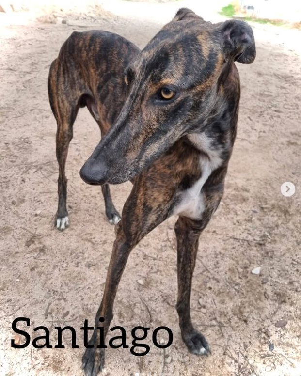 Santiago es un guapísimo galgo lleno de vida y energía. Alegre, curioso y siempre listo para disfrutar de nuevas aventuras, es el compañero perfecto para quienes buscan un perro activo y divertido. Es muy sociable con otros perros y disfruta jugando y compartiendo espacio con ellos. Con las personas es un encanto: cariñoso, confiado y siempre dispuesto a regalar cariño y compañía. En los paseos se porta muy bien y camina correctamente con la correa, disfrutando cada salida como una oportunidad para explorar el mundo con entusiasmo. Santiago está deseando encontrar una familia que valore su alegría, su nobleza y sus ganas de vivir. ¿Le das la oportunidad de convertirse en tu nuevo compañero de vida?