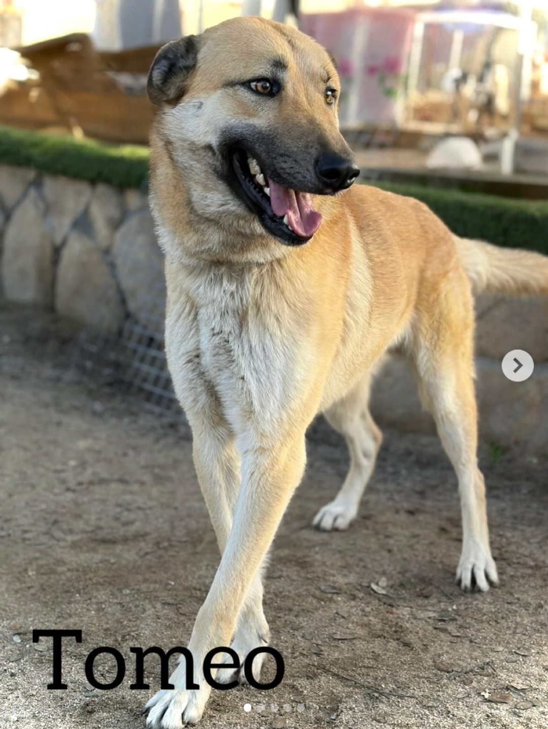 Tomeo es un perro lleno de energía y ganas de vivir. Es de esos compañeros que te reciben con entusiasmo y que siempre están listo para compartir momentos, paseos y mucho cariño. Con las personas es muy intenso y extremadamente cariñoso: le encanta el contacto humano, las caricias y sentirse parte de la familia. En el juego puede ser un poco brusco a veces, sobre todo porque no mide bien su fuerza ni sus emociones, pero responde bien cuando se le marca y con una convivencia adecuada puede aprender sin problema. Es ideal para personas activas, que disfruten de paseos, juegos y tengan ganas de canalizar toda esa energía de forma positiva. Con la correa va muy bien, lo que hace que los paseos con él sean agradables y una gran oportunidad para reforzar el vínculo. Tomeo solo necesita una oportunidad: un hogar donde le den tiempo, paciencia y amor para demostrar el gran perro que es. Si buscas un compañero fiel, activo y muy afectuoso, Tomeo puede ser tu mejor amigo.