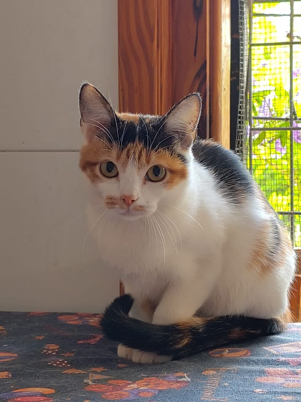 Ámbar se rescato junto a sus dos hermanitos de una colonia donde corrian peligro, es todo un amor de gata, al principio le cuesta coger confianza, no entendemos como nadie se ha fijado en ella aun.
