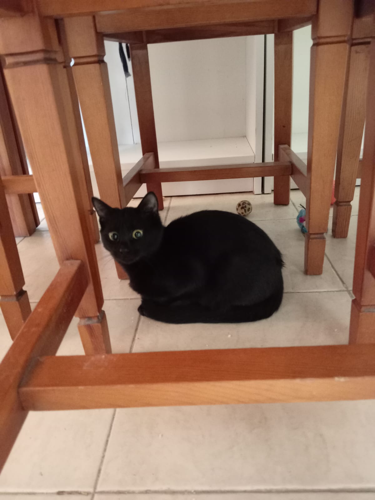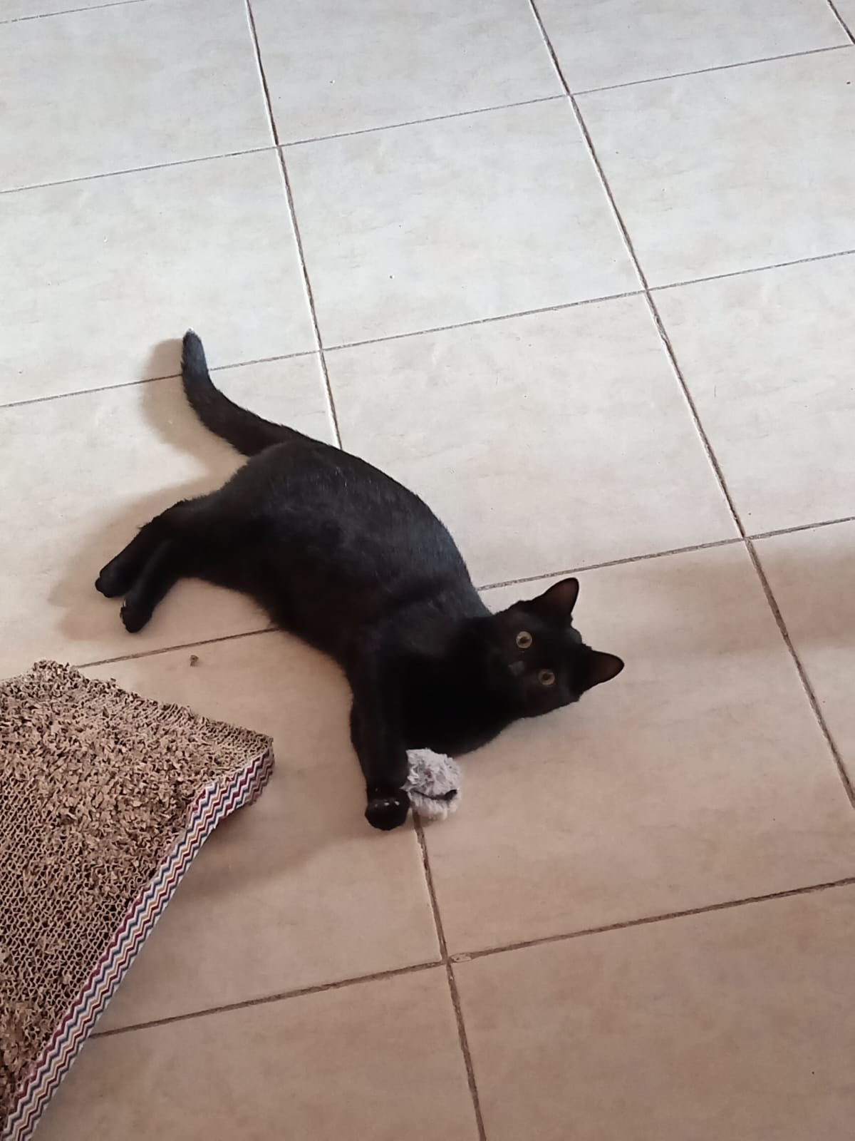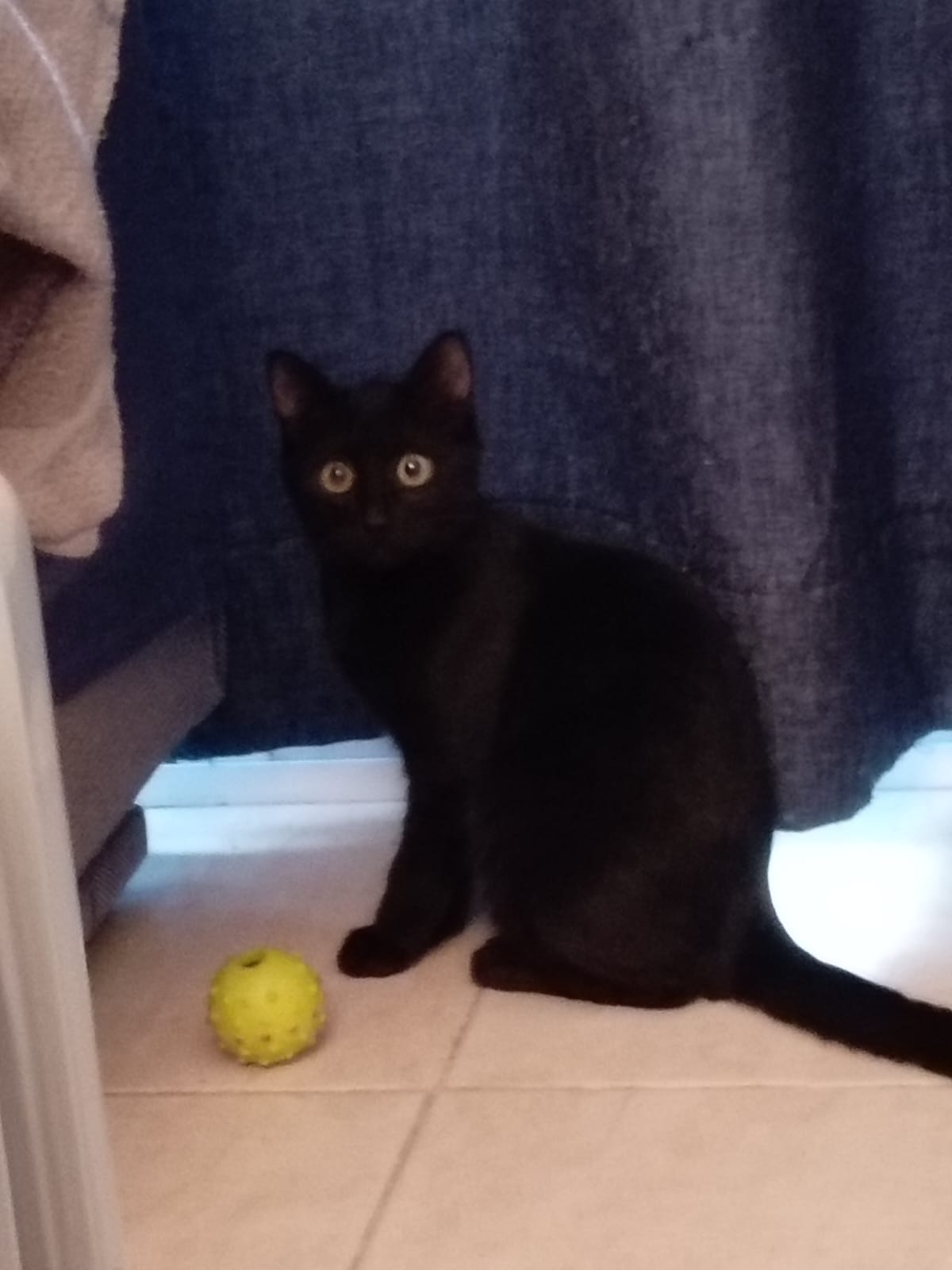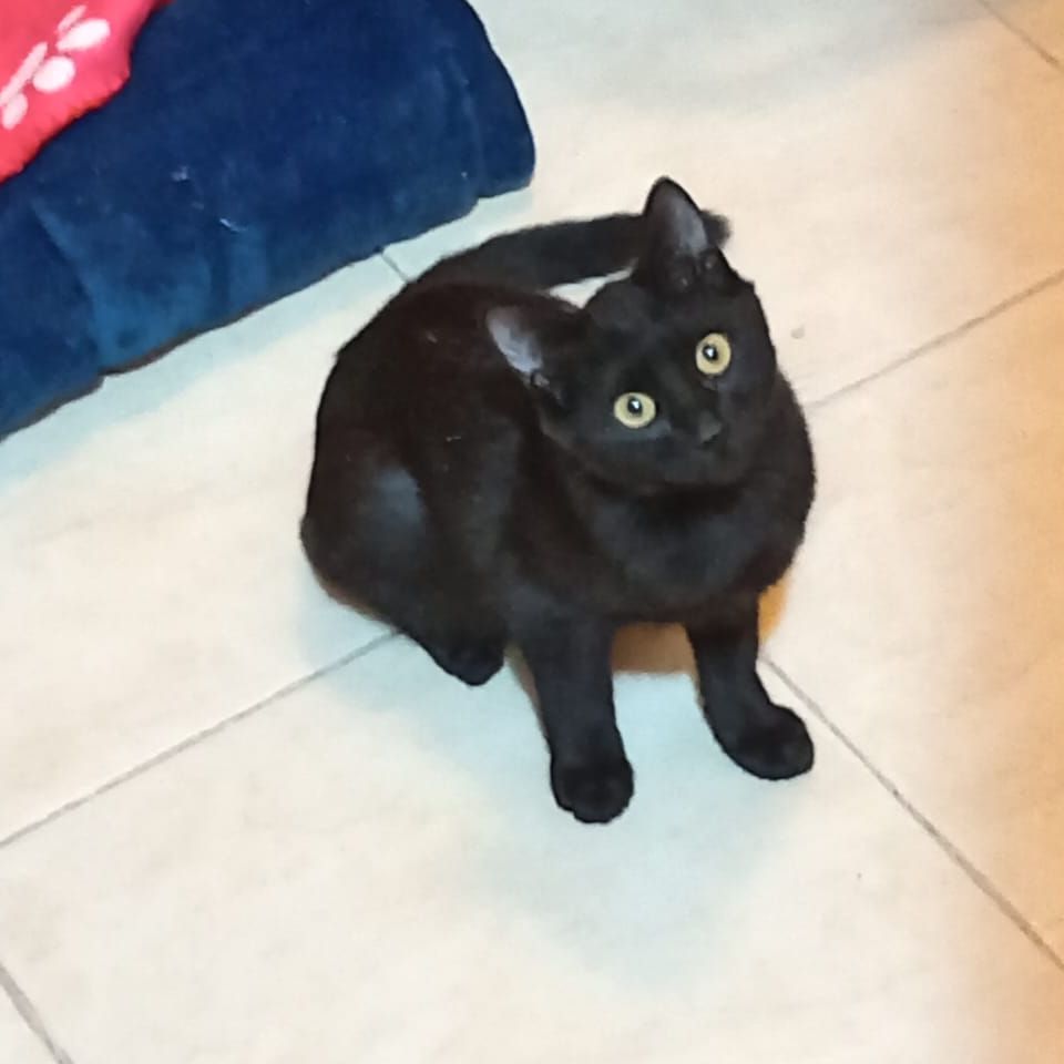 Bimba es una simpática gatita de tres meses, es todo curiosidad y siempre tiene los ojos muy abiertos esperando que juegues con ella. Está desparasitada y sana. Come súper bien y ya ya el arenero. Es súper limpita y siempre tiene brillante su precioso pelaje negro. Si quieres una gatita cariñosa y simpática, Bimba es para ti.