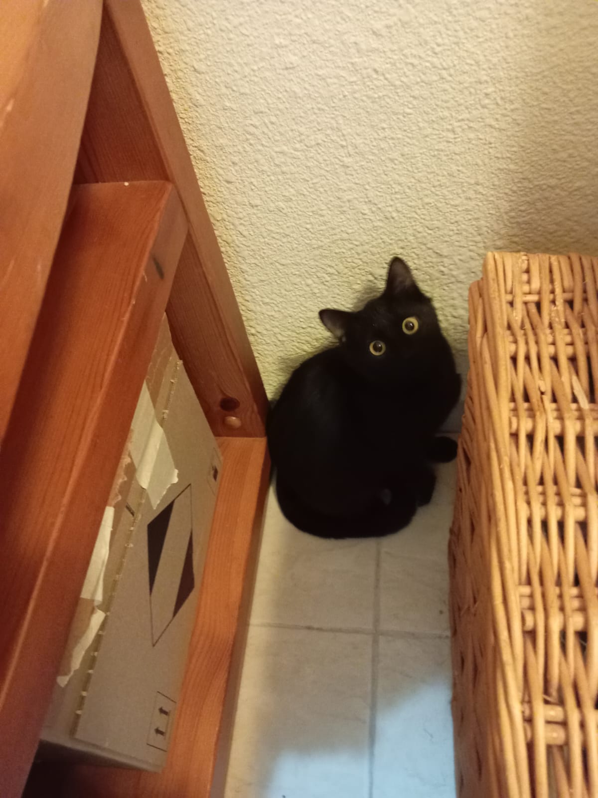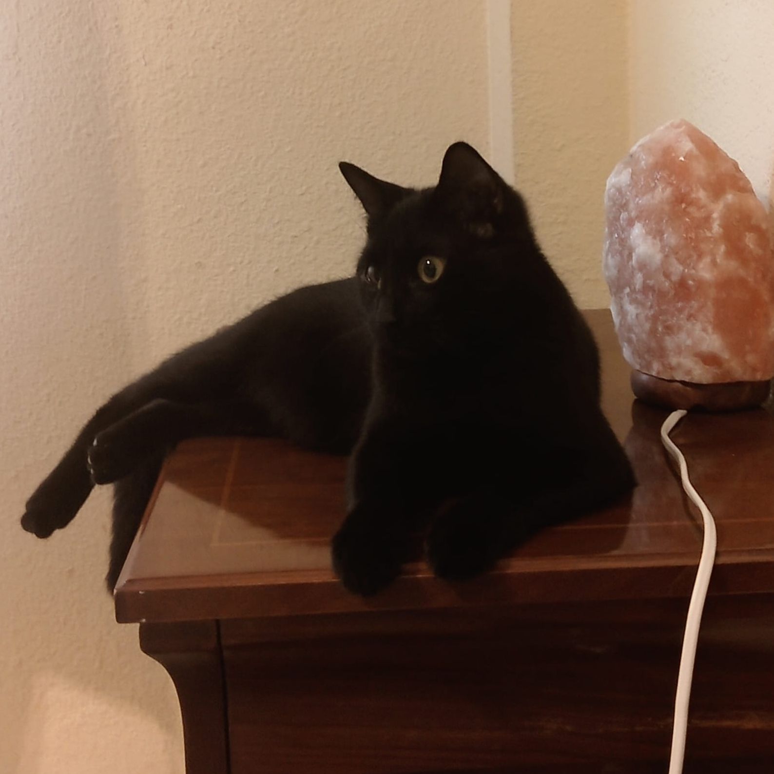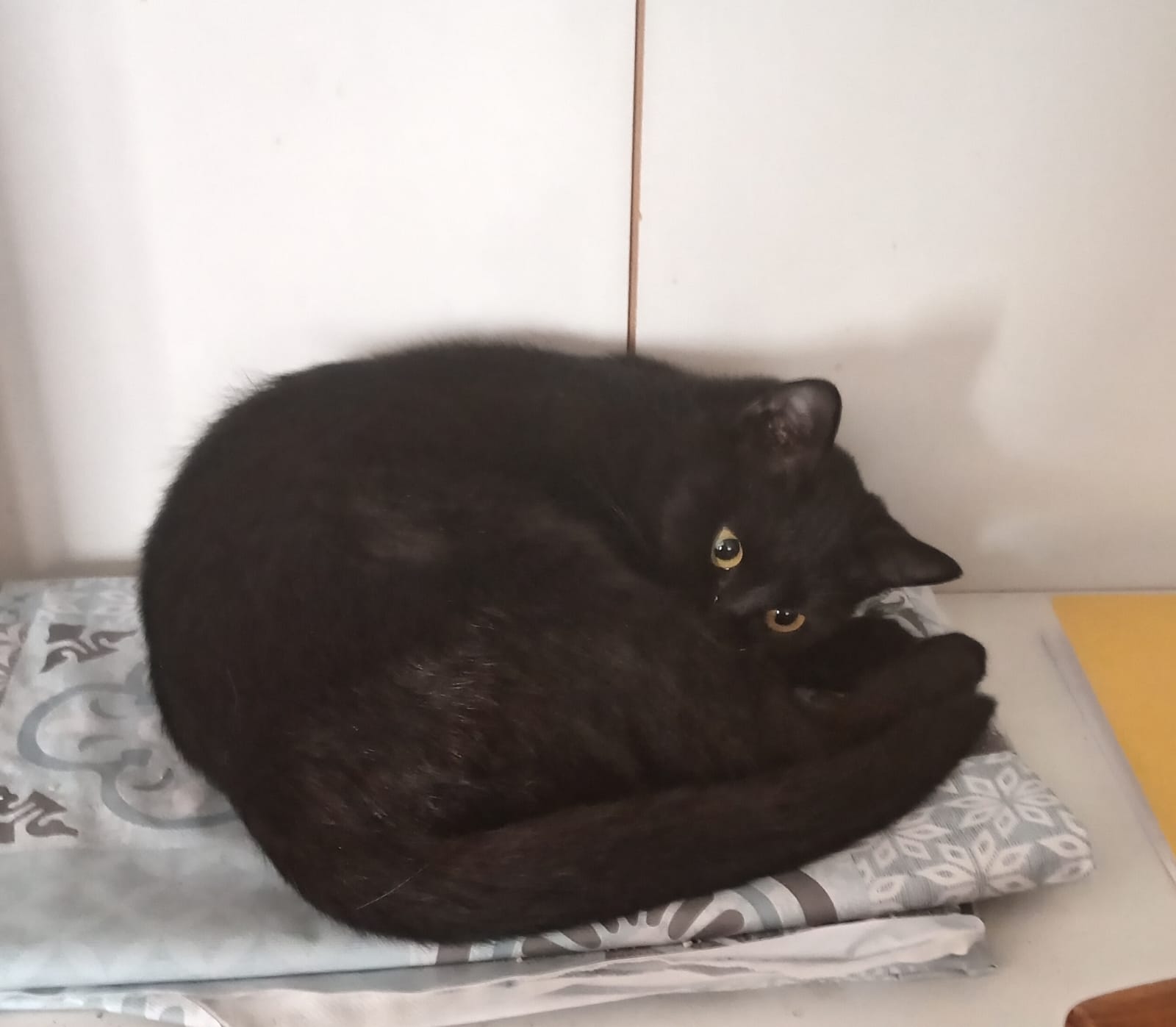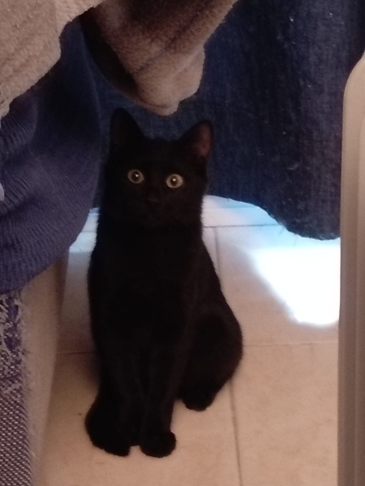 Bimba es una simpática gatita de tres meses, es todo curiosidad y siempre tiene los ojos muy abiertos esperando que juegues con ella. Está desparasitada y sana. Come súper bien y ya ya el arenero. Es súper limpita y siempre tiene brillante su precioso pelaje negro. Si quieres una gatita cariñosa y simpática, Bimba es para ti.