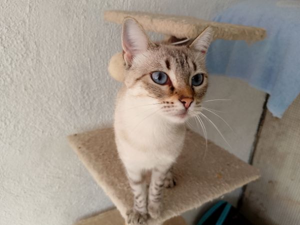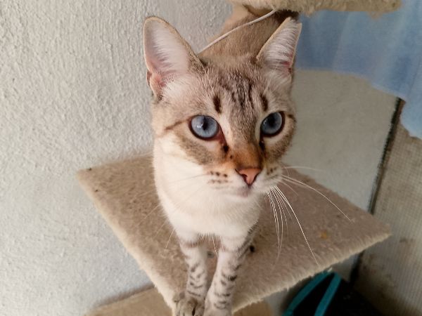 Chiara es una preciosa gatita mestiza de siamés, nacida aproximadamente en agosto de 2023. Es cariñosa, sociable y le encanta ser el centro de atención. Tiene mucha personalidad y sabe expresar muy bien lo que quiere. Prefiere ser gata única, ya que no se lleva bien con otros gatos. No ha sido probada con perros. Es joven, ágil y disfruta muchísimo de los mimos. Está esterilizada, vacunada, ha dado negativo en VIF y VLFe y se encuentra sana y feliz, lista para conquistar su nuevo hogar.