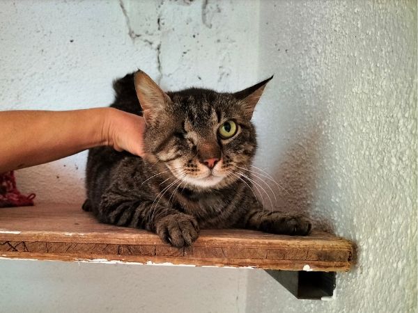 Fina llegó a APROP tras haber vivido en un hogar anterior, como indica la extracción de su ojo y su esterilización. A pesar de ello, nadie reclamó su cuidado. Desde su llegada ha demostrado ser una gata dulce, cariñosa y tranquila que disfruta del contacto humano. Ahora busca un hogar definitivo donde pueda recibir todo el amor y la estabilidad que se merece.