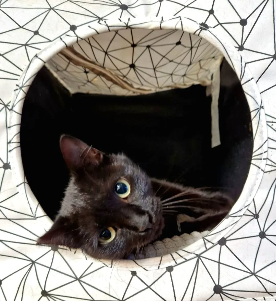 A Kurama la rescatamos con apenas 1 año de un local comercial donde se coló buscando refugio y desde entonces está con nosotras en una casa de acogida esperando a que aparezca su familia.