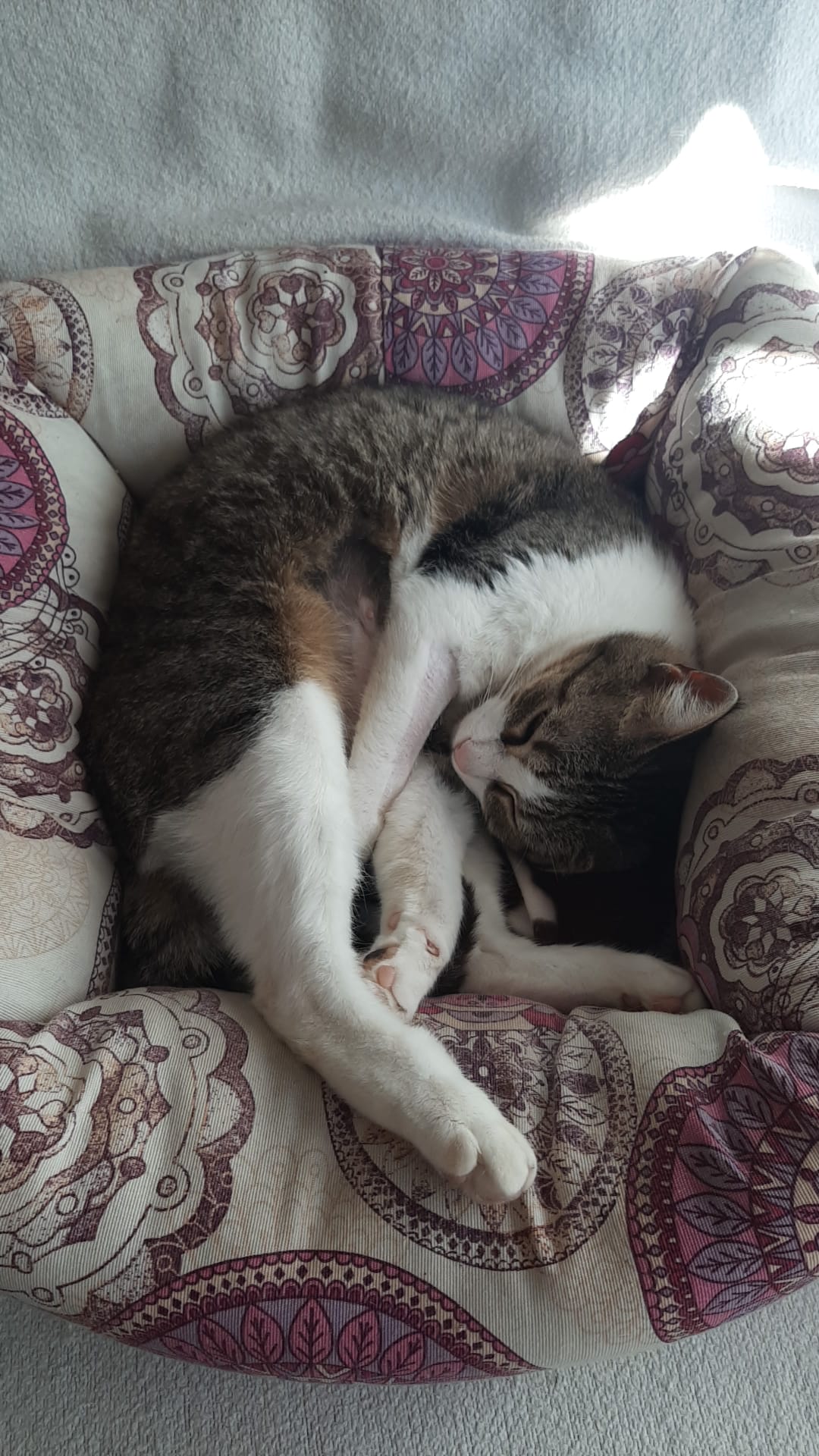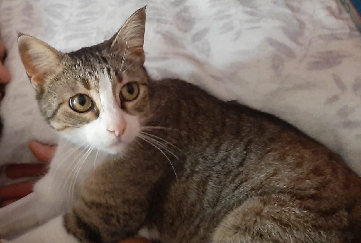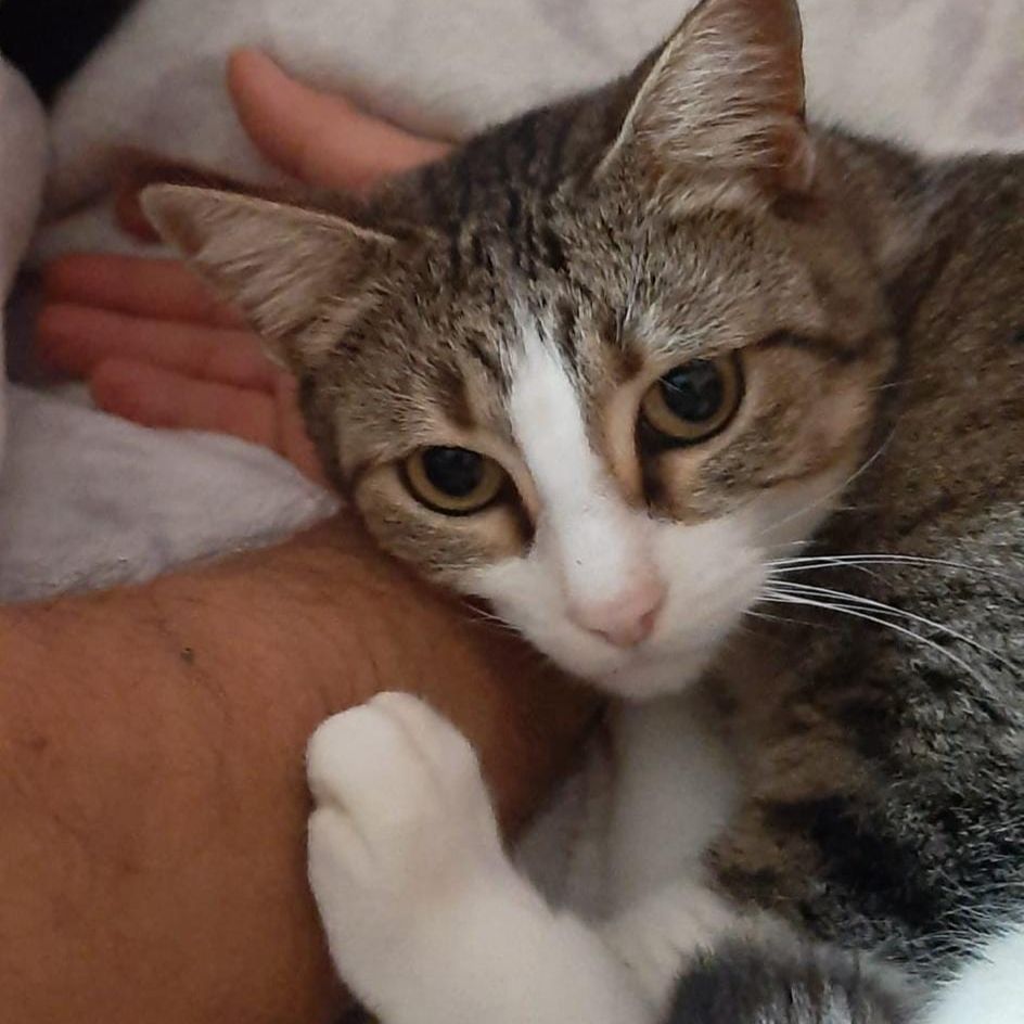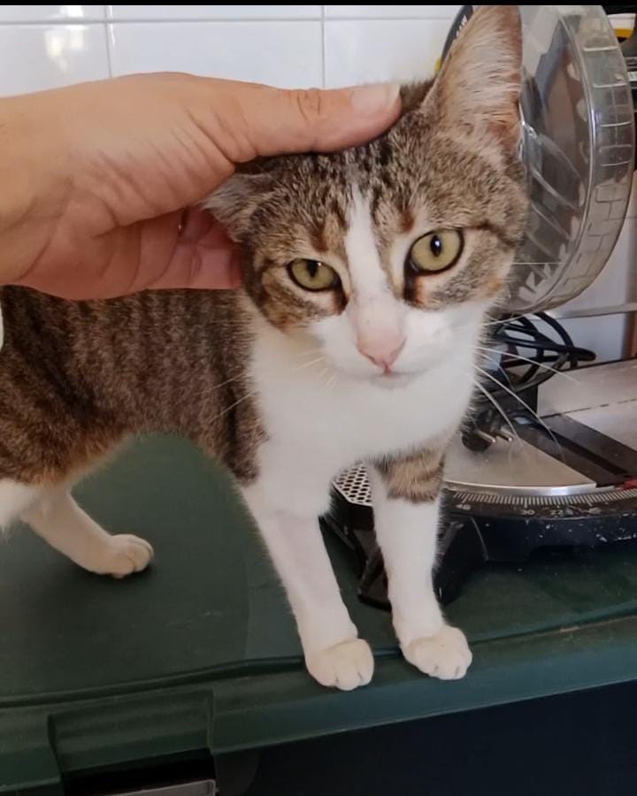 Hará unos dos meses más o menos la publicaron en redes sociales porque andaba pidiendo mimos por la calle la cogieron,llevaron a la policía y al no tener chip la volvieron a dejar donde estaba. Una gatita así corre mucho peligro de ser atropellada o acabar en malas manos así que nuestro compañero Dani en cuanto la vio,no dudo en cogerla. Layla es cariñosa y dulce, muy tierna, es la tipica gata que acaba durmiendo contigo. Ya está revisada,desparasitada,testada negativo y esterilizada.