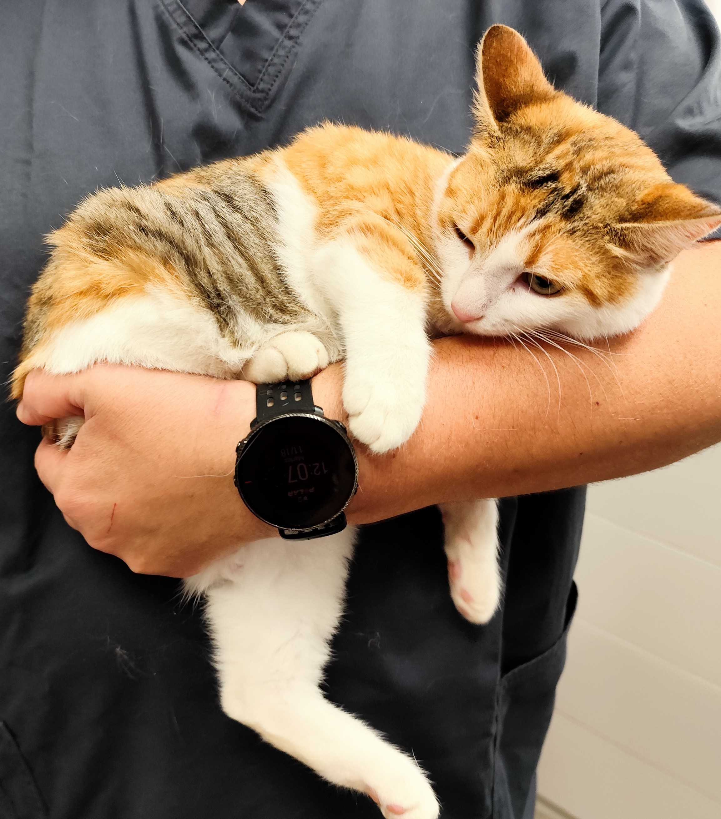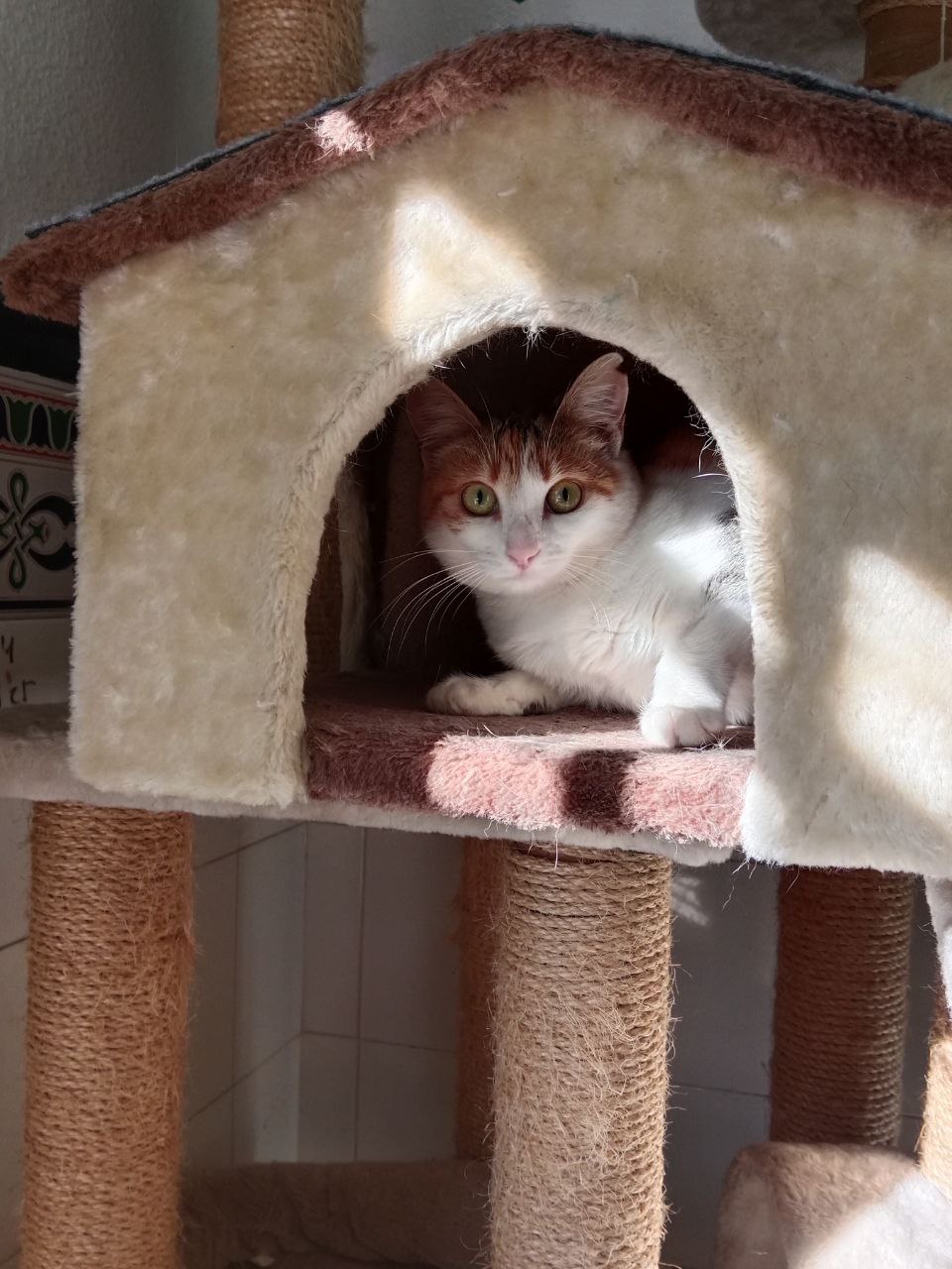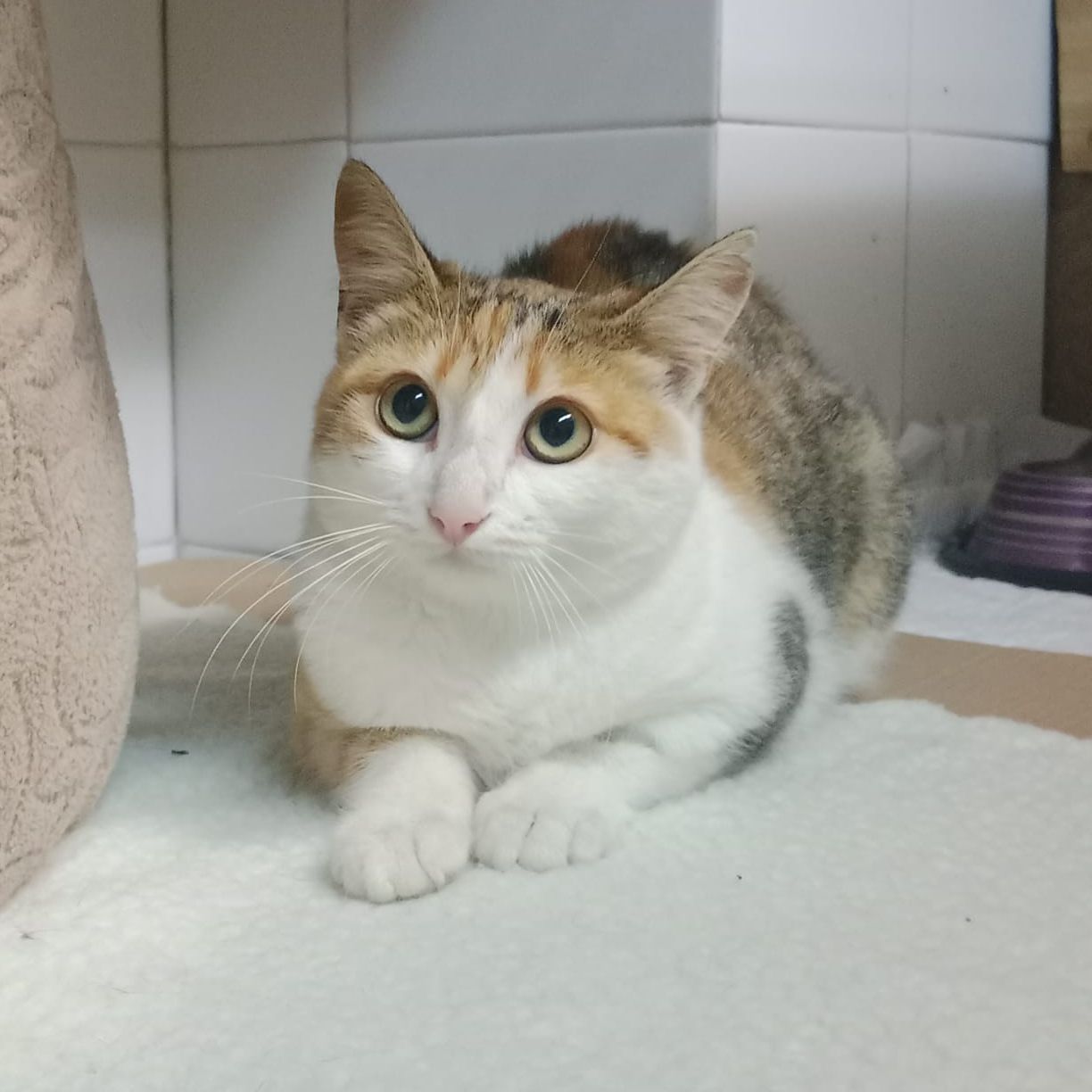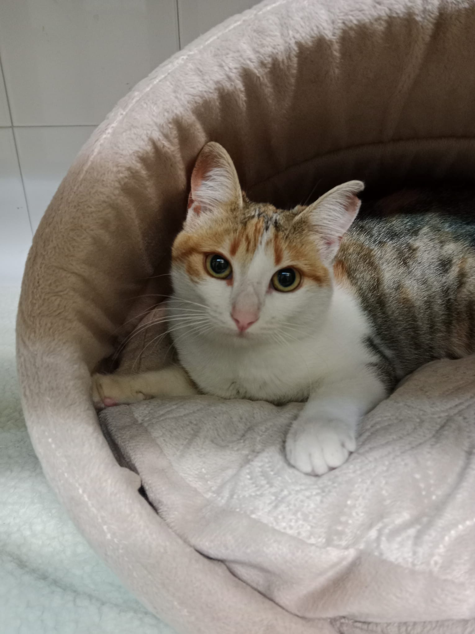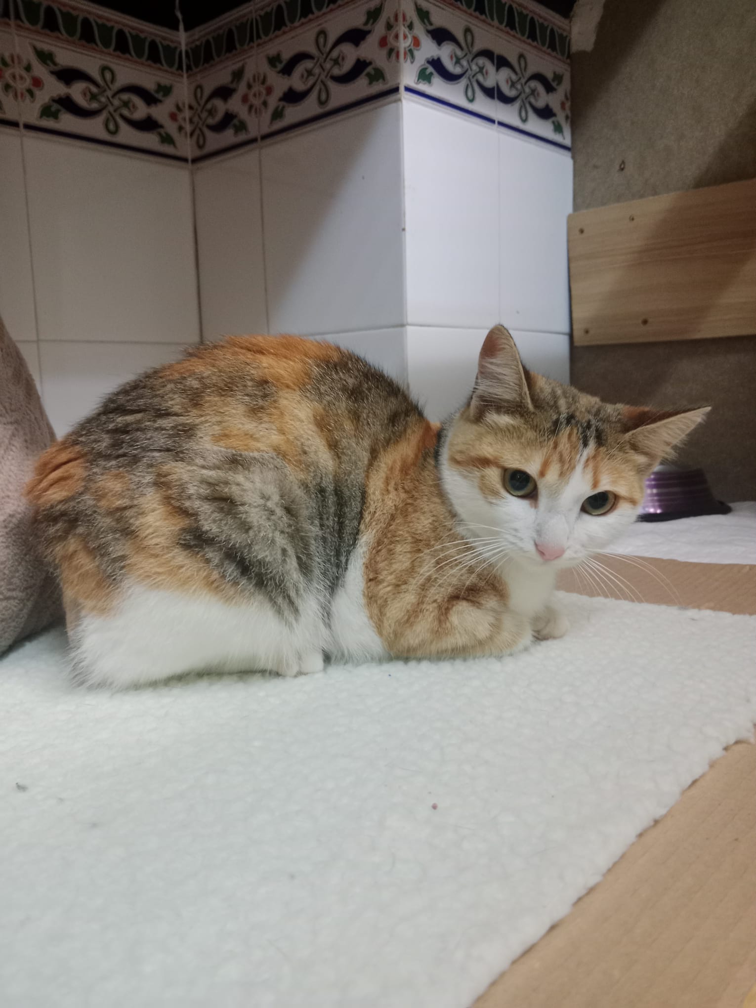 nos pasaron aviso de una gatita con el rabo en mal estado, la recogimos, por lo visto le habia mordido un perro y lo tenia necrosado, se le ha tenido que amputar, se ha esterilizado y se ha visto que es super cariñosa, asi que esta buscando un hogar..Testada de leucemia e inmuno negativo.