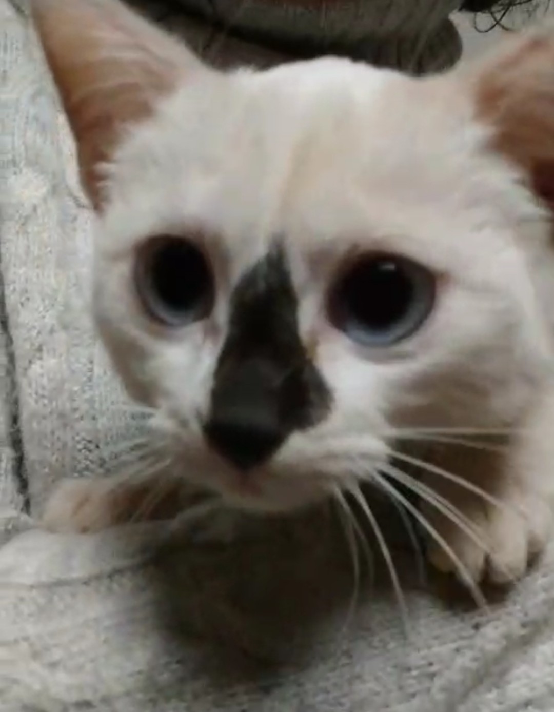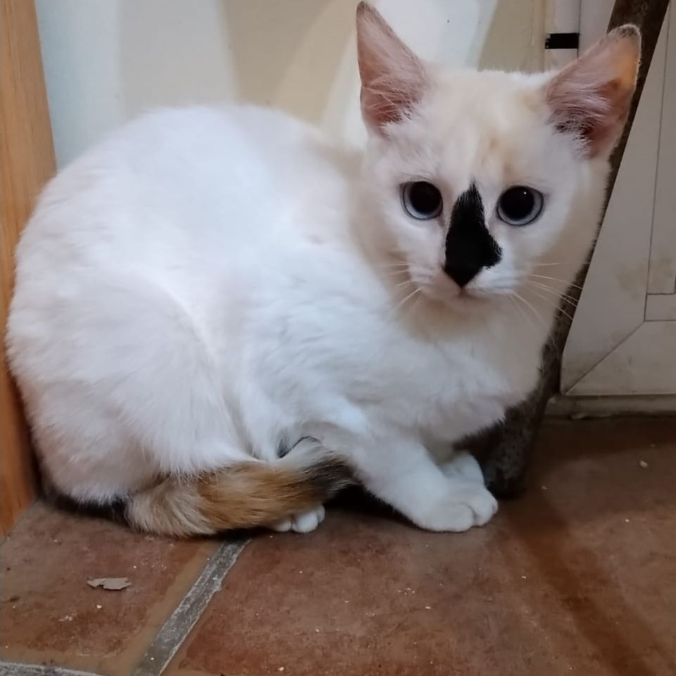 Gatita preciosa blanca con un rombo negro en nariz, tranquila y salgo tímida. Se lleva bien con otros animales. Se da en adopción desparasitada. Tiene unos tres meses. Estamos en museros a diez minutos de Valencia capital. Contacto 654760736.