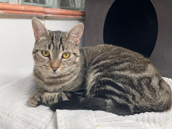 Marta llegó al refugio con una infección ocular grave, y gracias a cuidados constantes y atención veterinaria, se ha recuperado por completo. Desde su llegada ha demostrado ser una gatita dulce, amable y juguetona, que ahora busca un hogar estable y seguro donde pueda seguir creciendo y recibiendo cariño.