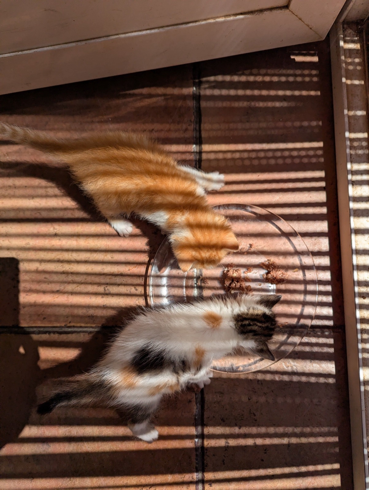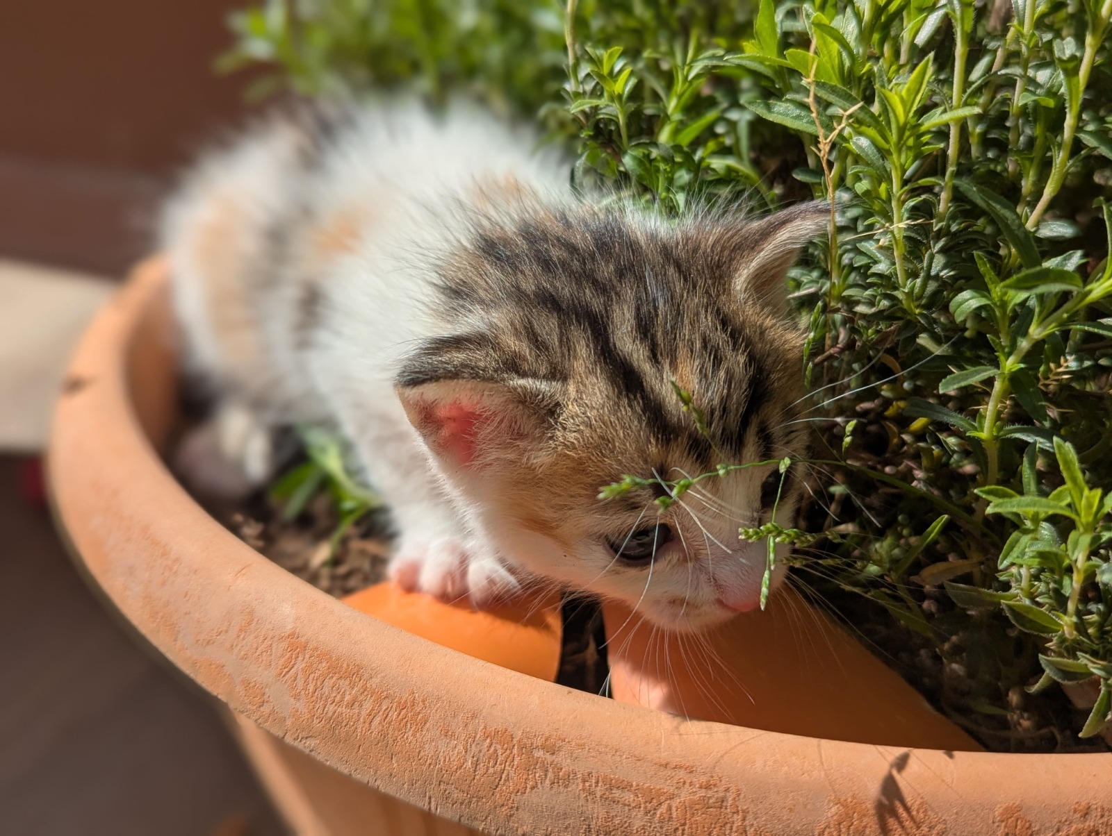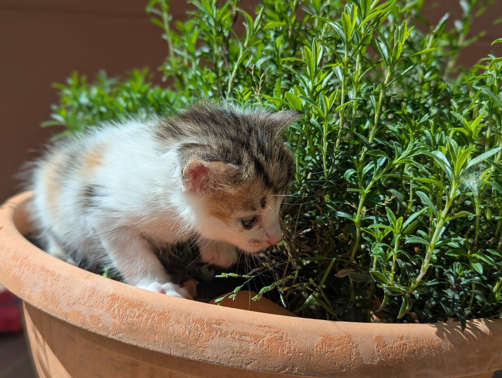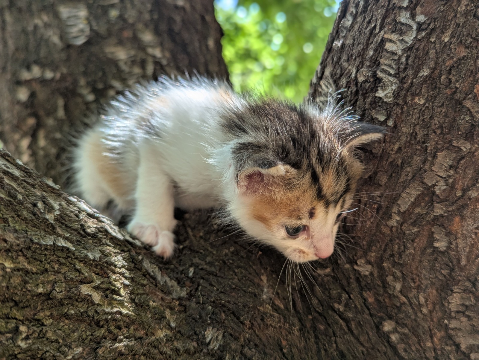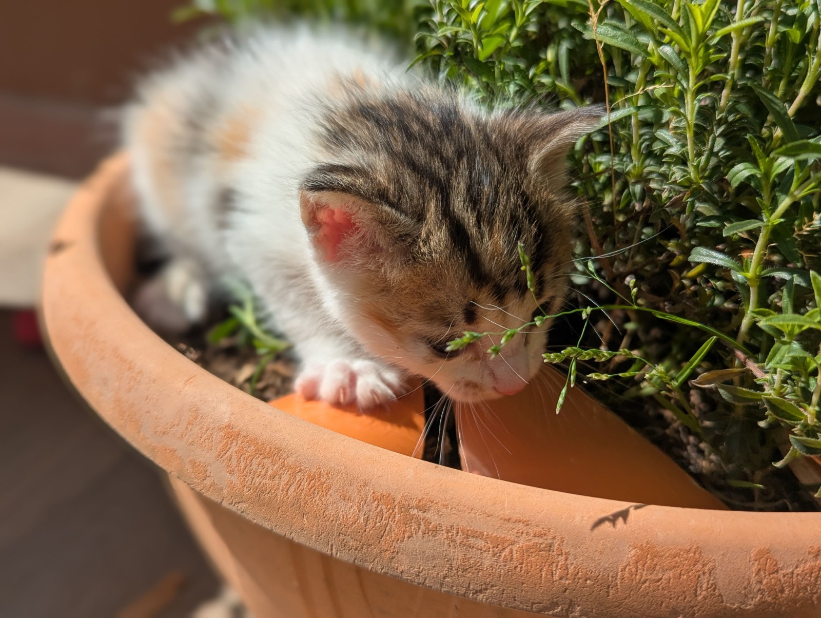 Mele es una adorable gatita tricolor, blanca con manchitas naranjas y pardas. Tiene apenas 1 mes y es muy buena, cariñosa y curiosa. Le encanta jugar con su hermano y después quedarse dormida encima de las personas. Es una pequeñita muy especial y dulce.