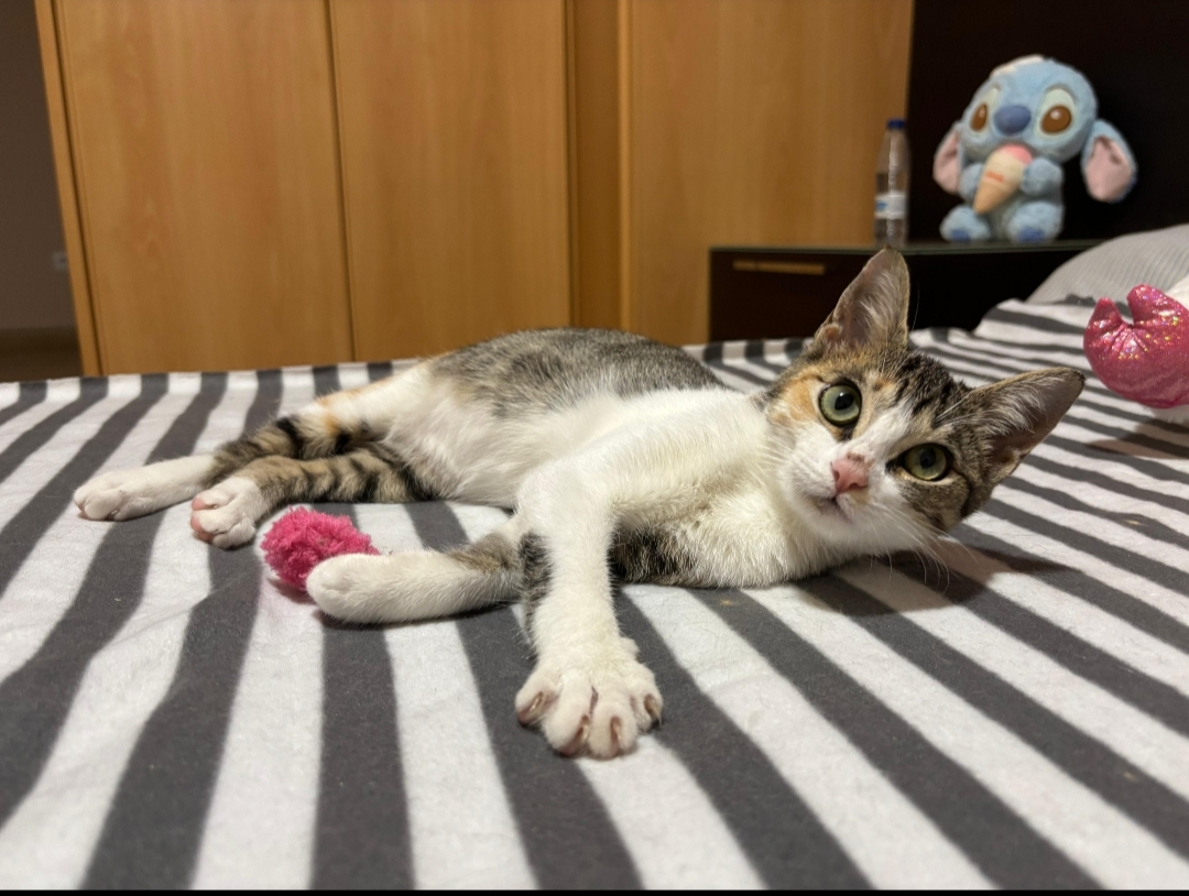 Nala és una gatita de 2 meses y medio llena de amor y ronroneos. Fue rescatada y ahora espera esa persona especial para vivir una vida llena de mimos que tanto merece. És una gatita 10, tan Noble como bonita. Adopta a Nala, y tu vida se llenara de alegria y amor incondicional.