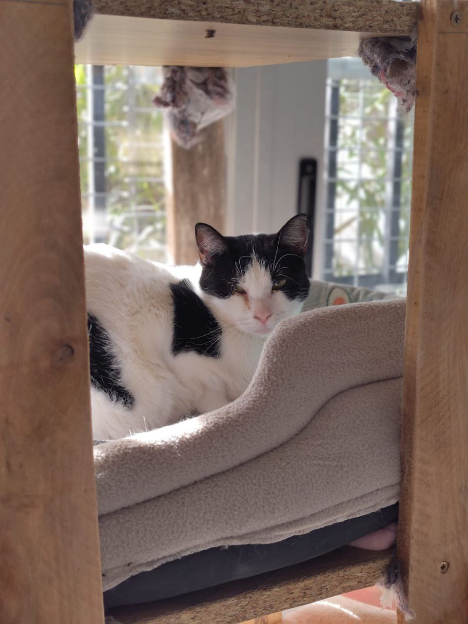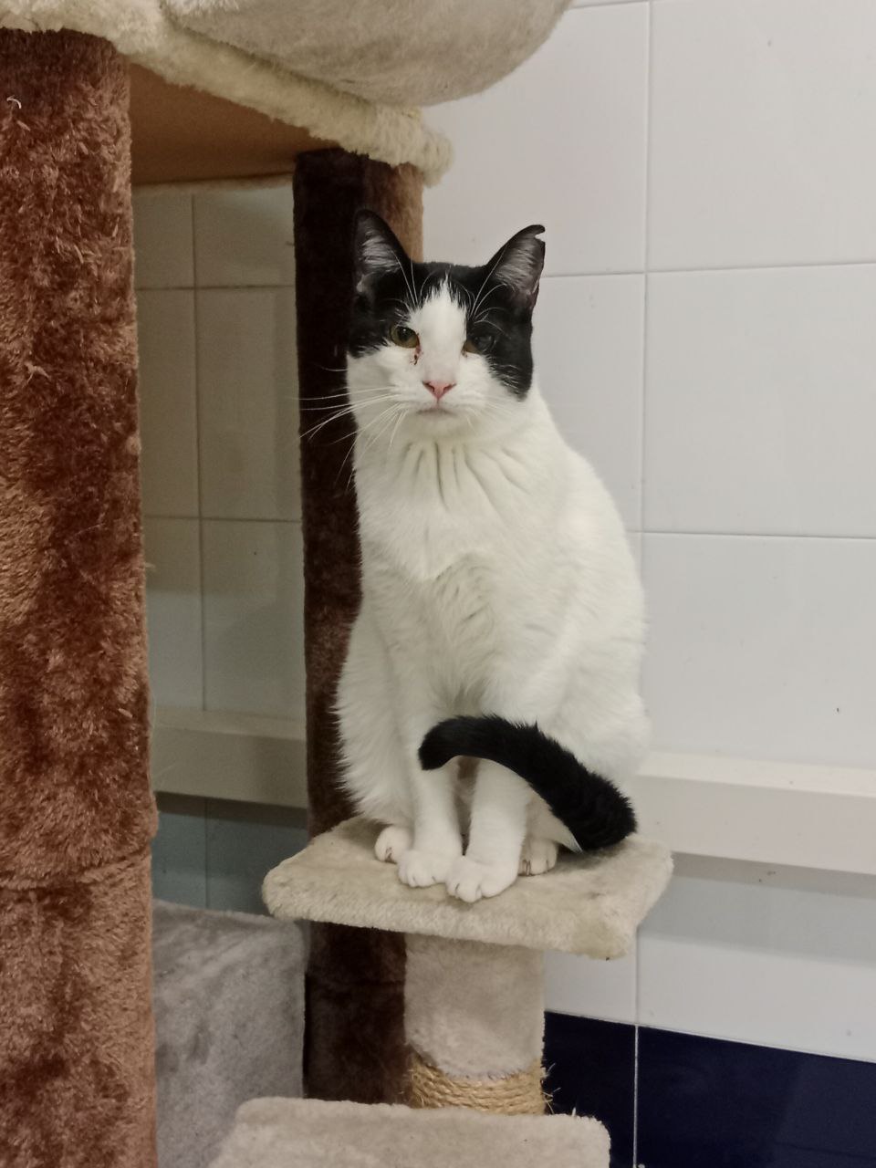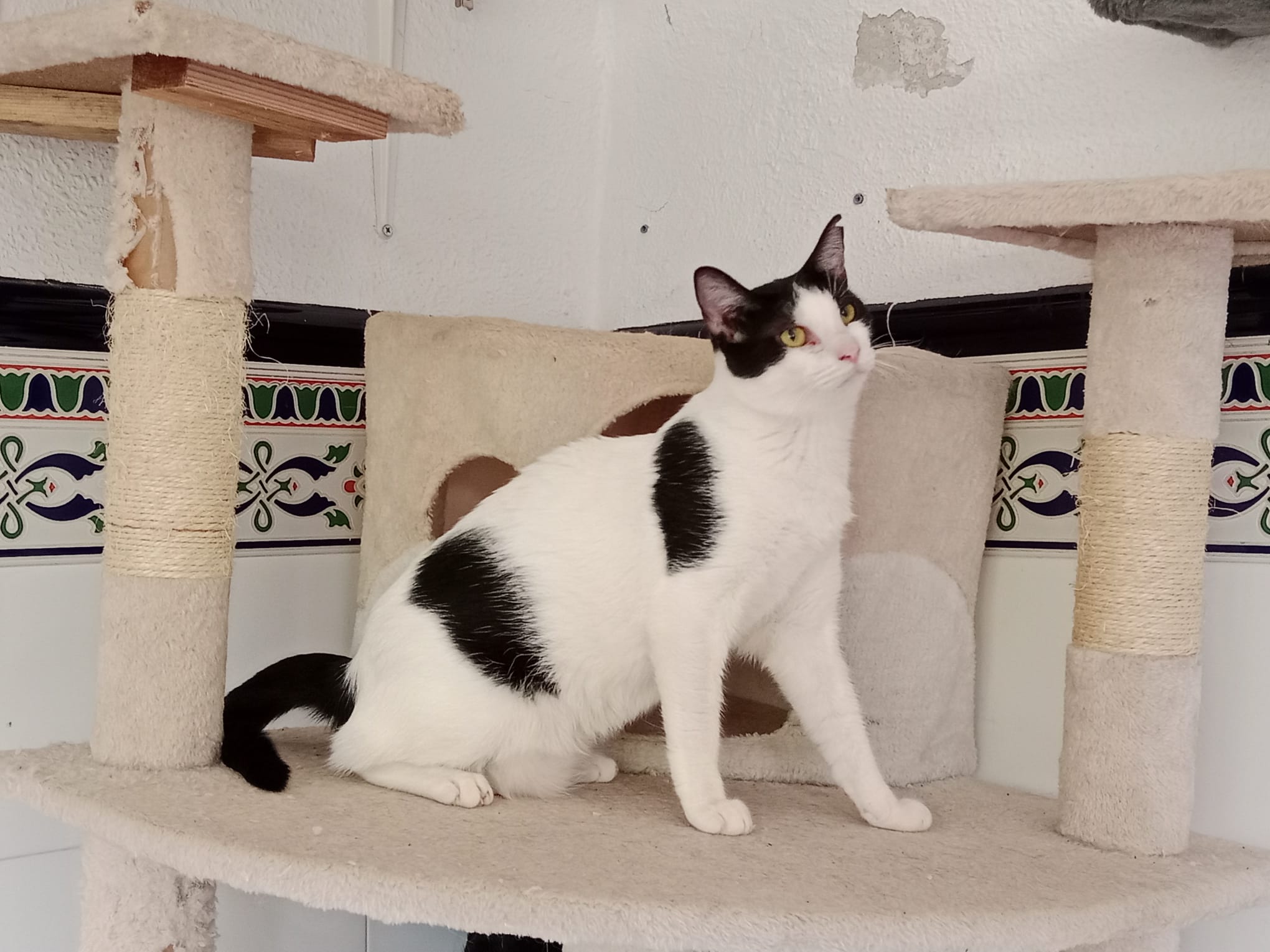 Fue rescatada de una parcela abandonada de la cual nunca habia salido, muy miedosa al principio, ahora esta empezando a confiar en el ser humano, es muy buena, necesita un hogar en el que ser feliz.