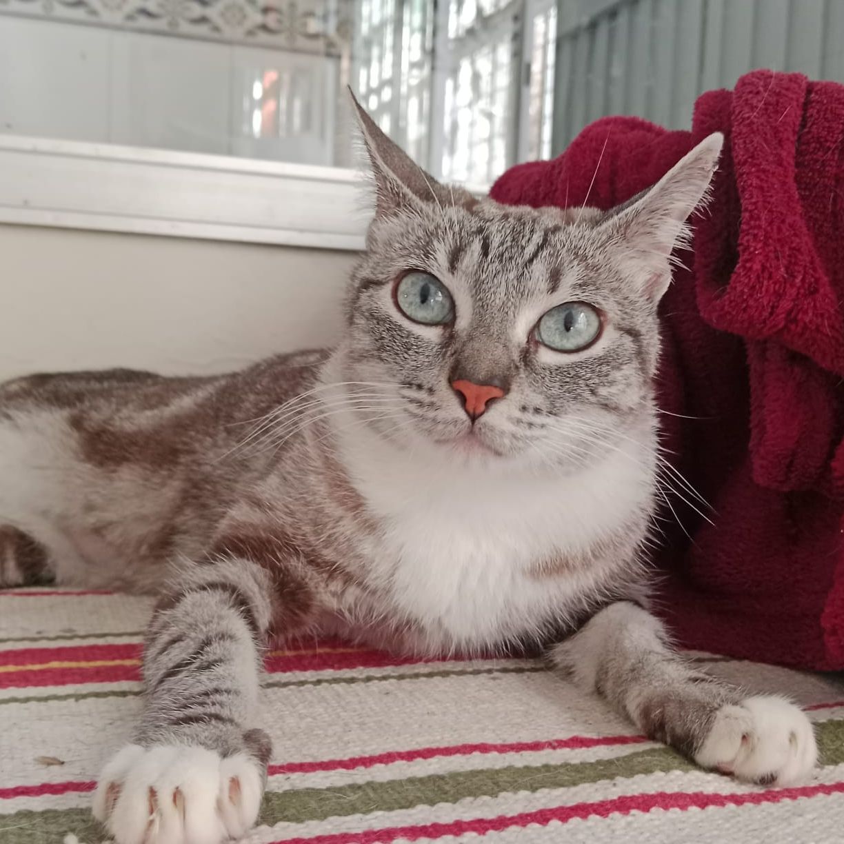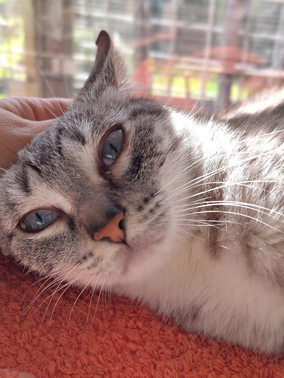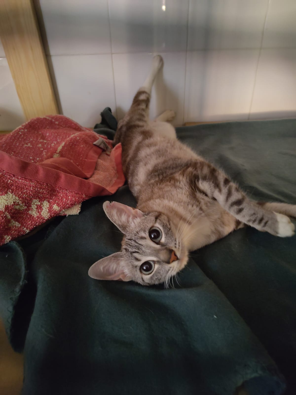 Gata joven de 1 año aprox. Carácter tranquilo, muy buena y cariñosa. Revisada, desparasitada, testada negativo a enfermedades y esterilizada.