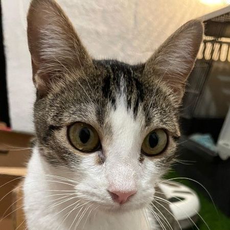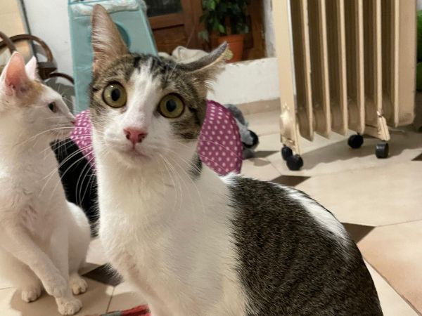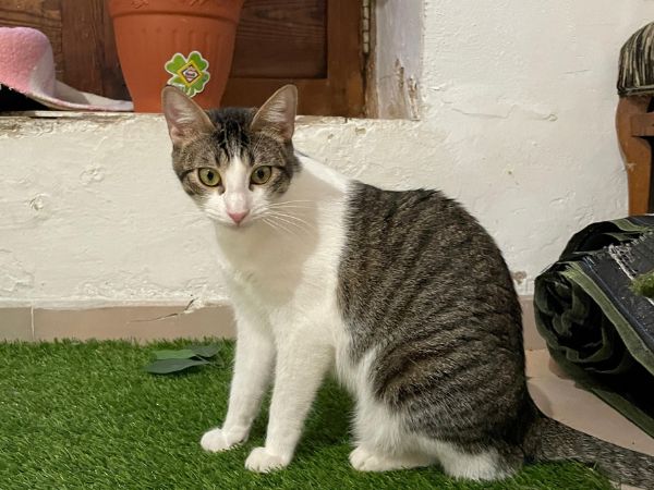 Zazie es una preciosa gatita blanca y negra que adora a los humanos y a otros gatos. Fue dejada en la perrera exterior de APROP junto con (creemos) dos hermanas, Xia y Yoko. Su fecha estimada de nacimiento es alrededor de abril de 2023. Zazie es muy juguetona y cariñosa con las personas. Es una joven amigable, activa y le encanta divertirse y hacer ejercicio. Le encantaría compartir un hogar con otros gatos y disponer de un jardín seguro, aunque no ha sido probada con perros. Está esterilizada, ha dado negativo en las pruebas de FIV y FeLV, sus vacunas están al día y es una gata sana y feliz. Zazie seguramente hará muy feliz a su nueva familia y será la reina de su hogar.