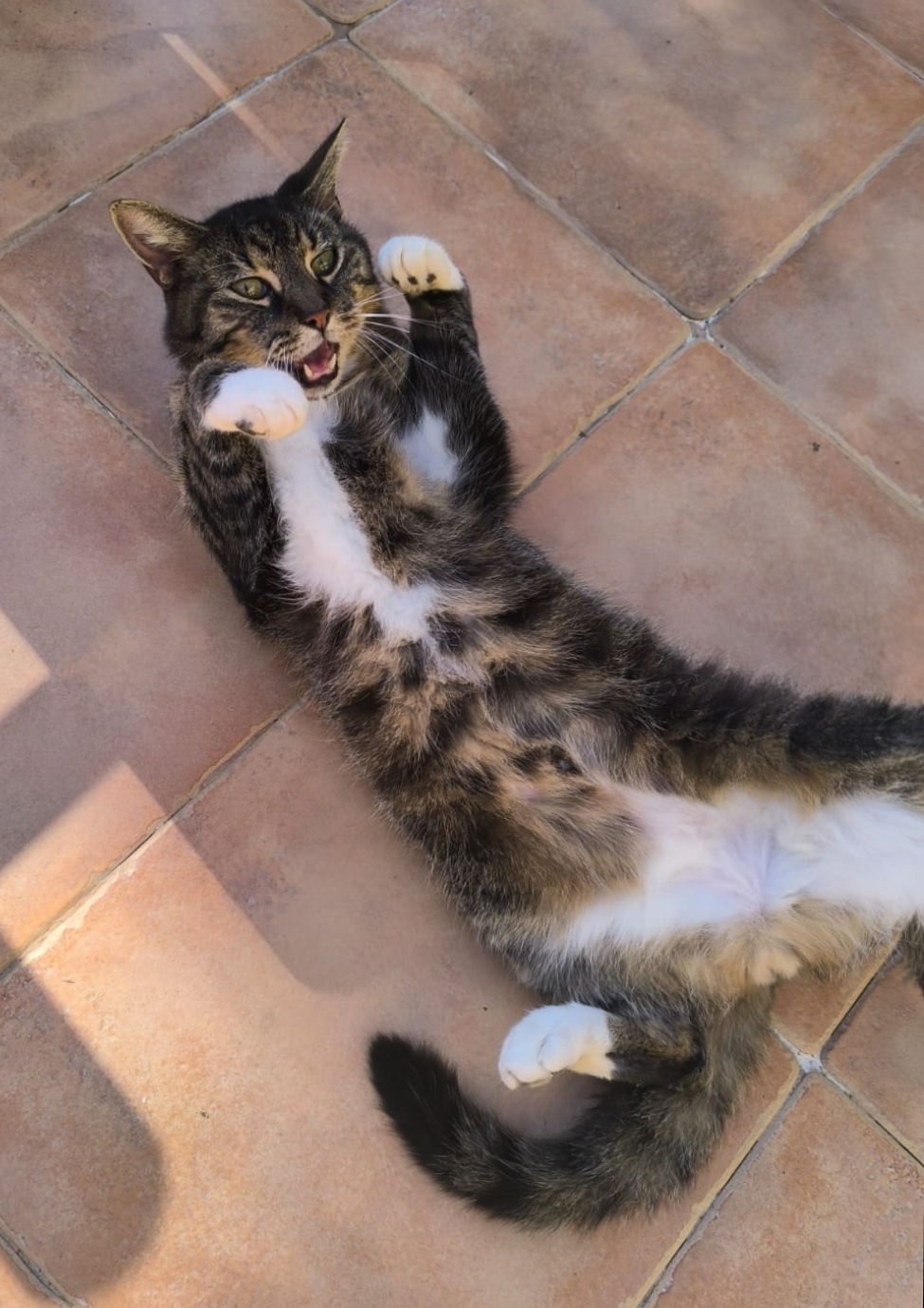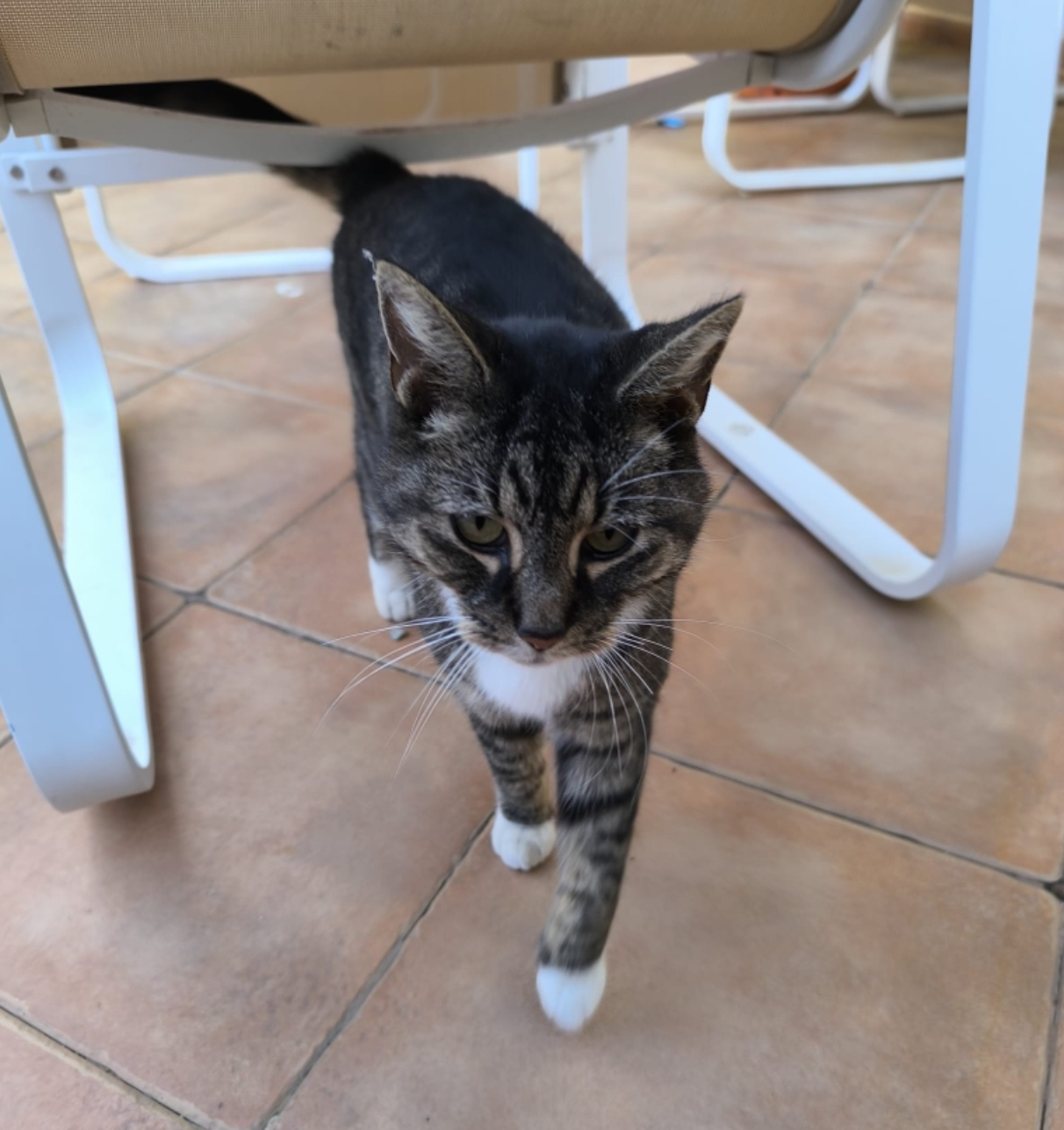 Nombre: Bakai (Kai) Edad: 9 años Vacunas: Al día, incluida la rabia Esterilizado: Sí Test leucemia/inmuno: Realizado, resultado negato. Plácido y tímido, muy cariñoso. Le encanta sentarse en tu regazo, pasar tiempo al sol en el exterior, pero también disfruta mucho de la vida en interiores. Suele maullar bastante para comunicarse. Se lleva bien con niños. No tolera a otros gatos. Con perros es indiferente.
