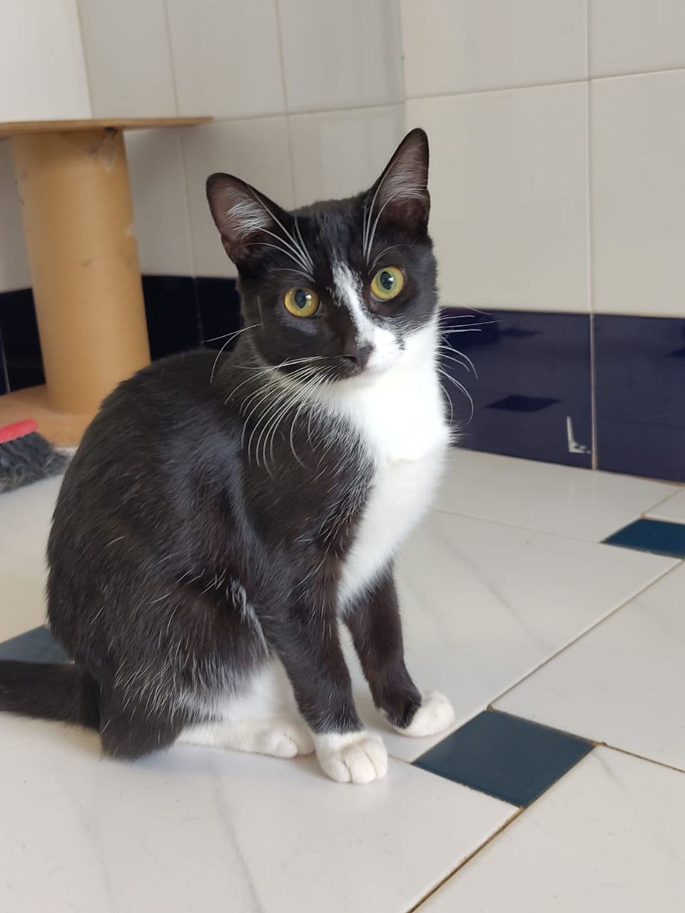 Se rescato junto a sus dos hermanitos de una colonia donde corrian peligro, es todo un amor de gato, ademas que tiene una cara guapisima, no entendemos como nadie se ha fijado en el aun.