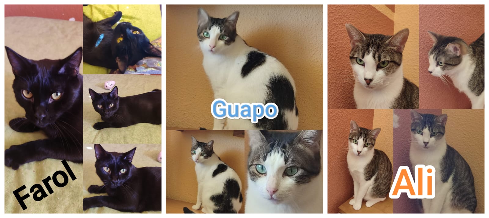 Masamagats informa: tenemos estos tres gatitos que están condenados a vivir en una habitación por ser portadores del virus de la leucemia. Queremos darle visibilidad a estas preciosidades pues su vida es muy triste. Llevan ya más de un año encerrados en una habitación sin tener la posibilidad de ser adoptados. Necesitamos familias que se animen a ayudar a estos gatitos pues también tienen derecho a ser felices. Por el hecho de tener un virus los estamos condenando de por vida, sin darnos cuenta que todos los gatitos pueden tener cualquier enfermedad que también sea peligrosa. Necesitamos esas personas que se dejen a un lado ese temor y les den todo el amor que ellos necesitan, pues también pueden vivir muchos años siendo únicamente portadores sin manifestar la enfermedad. Si quieres tener un gatito único, no lo dudes, piensa en ellos. *Farol* (2 años), desparasitado, castrado y vacunado. *Guapo* (2 años) castrado, vacunado, desparasitado y con chip. *Ali* hembra de 2 años, esterilizada y desparasitada.
