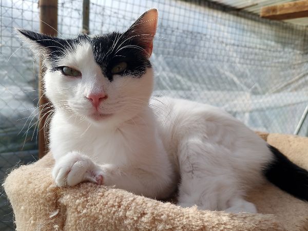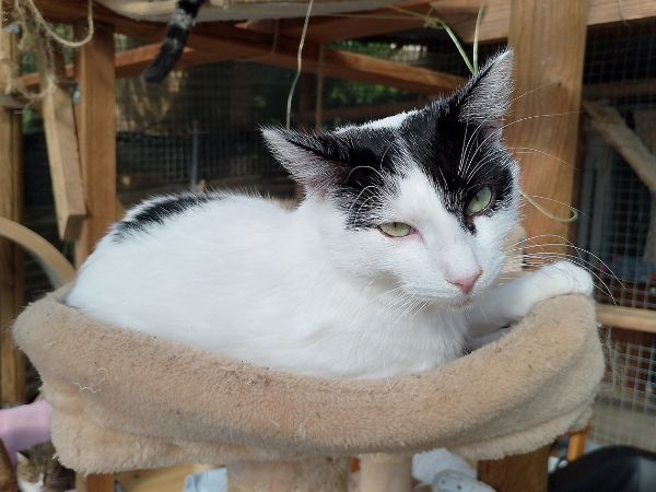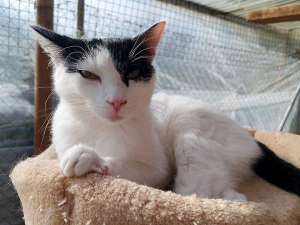 Fermín es un gato macho blanco y negro súper tierno, nacido aproximadamente en abril de 2025. Llegó a nuestra perrera exterior en julio de 2025. A Fermín le encanta relajarse y descansar. Es juguetón y curioso, disfruta mucho de la atención humana y es muy sociable con otros gatos. Tiene una personalidad encantadora y le gusta pasar el tiempo al sol. Es un gato faldero fantástico y busca un hogar tranquilo donde pueda recibir cariño y sentirse seguro. Fermín está sano y feliz, ha dado negativo en las pruebas de VIF y VLFe, está castrado y vacunado al día. Se lleva bien con otros gatos y hará muy feliz a su nueva familia.