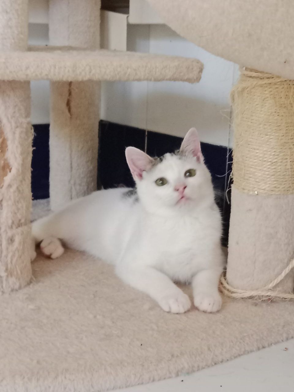 Freddie se recogio por un aviso de un gatito con los ojos muy mal, se trato y ahora esta fenomenal, es muy muy mimoso, negativo a leucemia e inmuno.