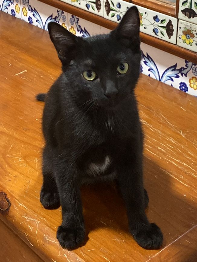 Gatito negro y blanco en el cuello muy dulce, precioso y muy bueno. Juguetoón, divertido y cariñoso busca hogar. Estamos en Museros a diez minutos de Valencia capital. Interesados contactar al teléfono 654760736