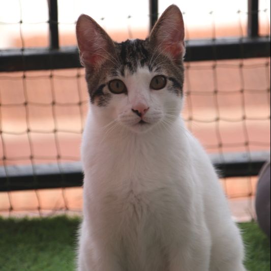 Rescatado junto a sus 3 hermanos, tras el atropello de su madre. Nacido sobre el 25 de julio de 2025, ya lo hemos desparasitado, vacunado, le hemos esterilizado, y su analítica de sangre es negativa a leucemia e inmunodeficiencia felinas. Y está fuertote y guapo el enano dulzón...