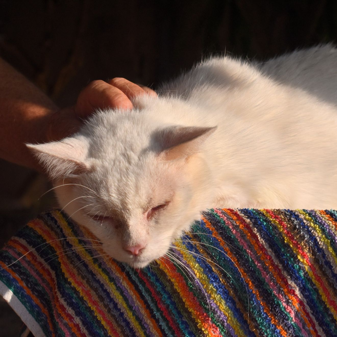 Tiene una pequeña calcificación en la córnea, pero ve bien y hace vida normal. Es cariñoso y tranquilo.