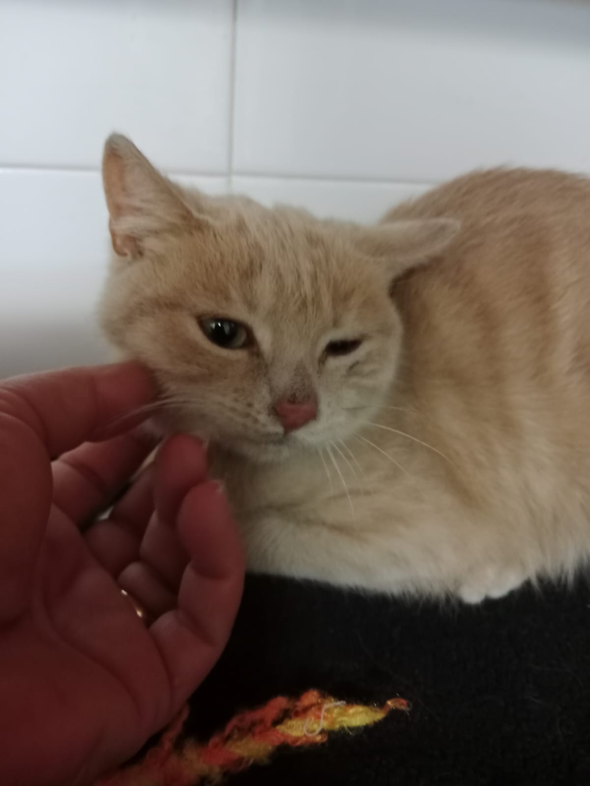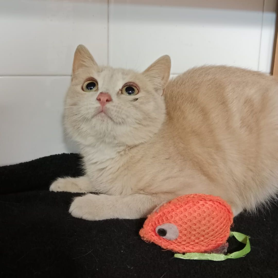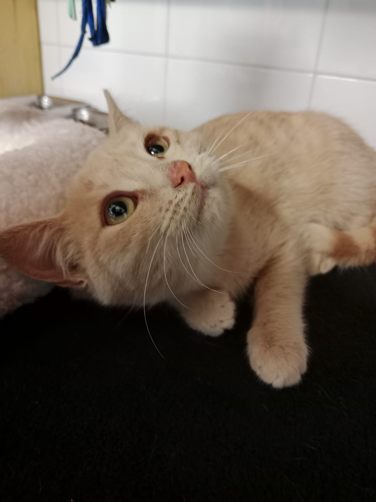 Este gatito de color peculiar es Olaf, nos avisaron que parecio en una urbanizacion cercana, estaba junto a una carretera y corria mucho peligro, lo recogimos y ha resultado ser un mimoson, quieres ser tu quien le de un hogar?