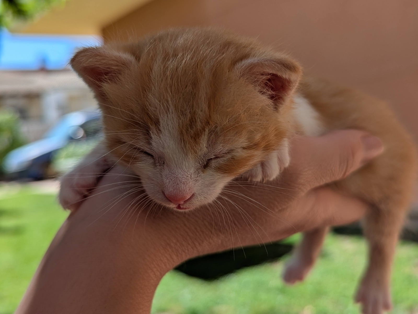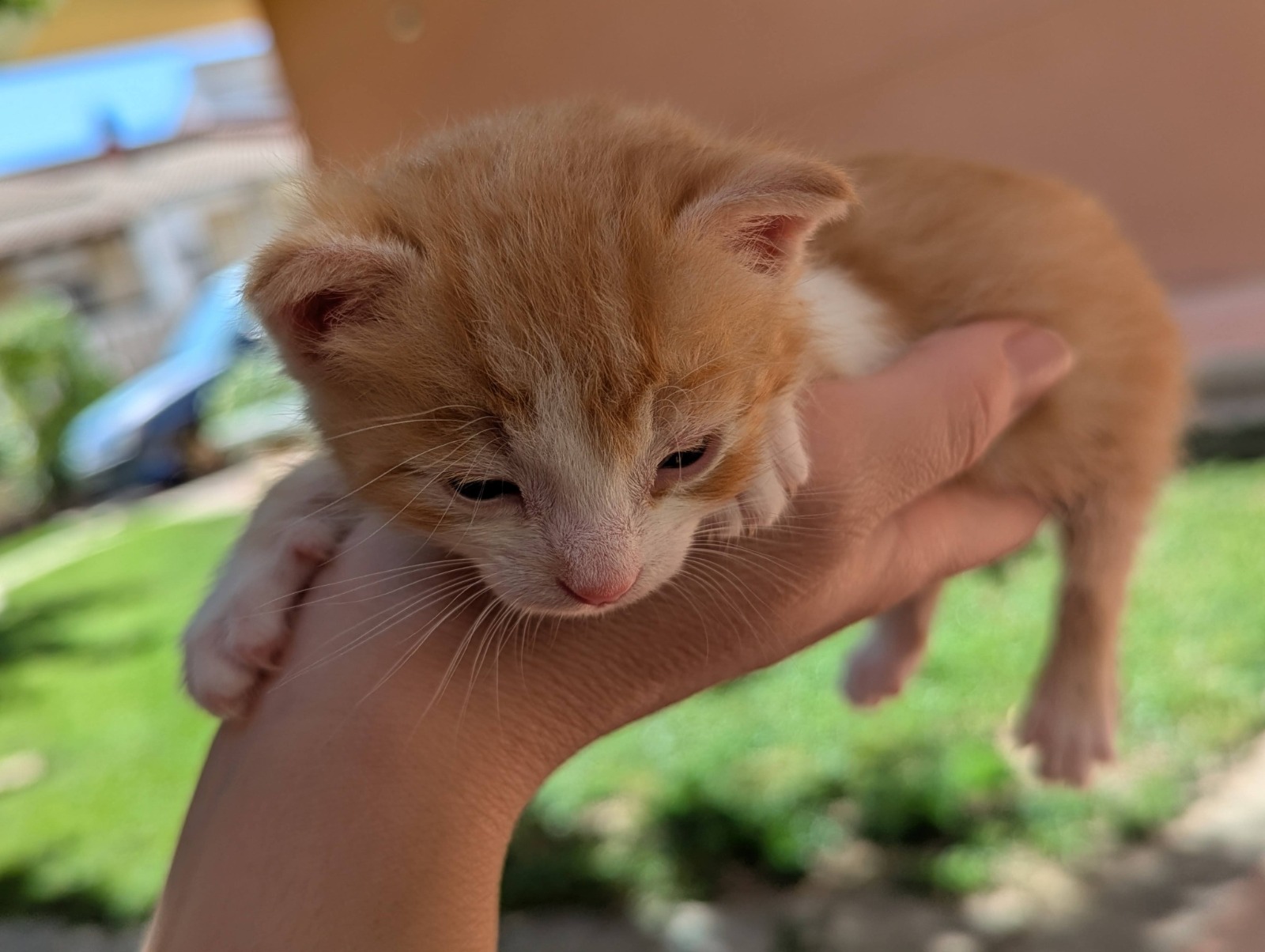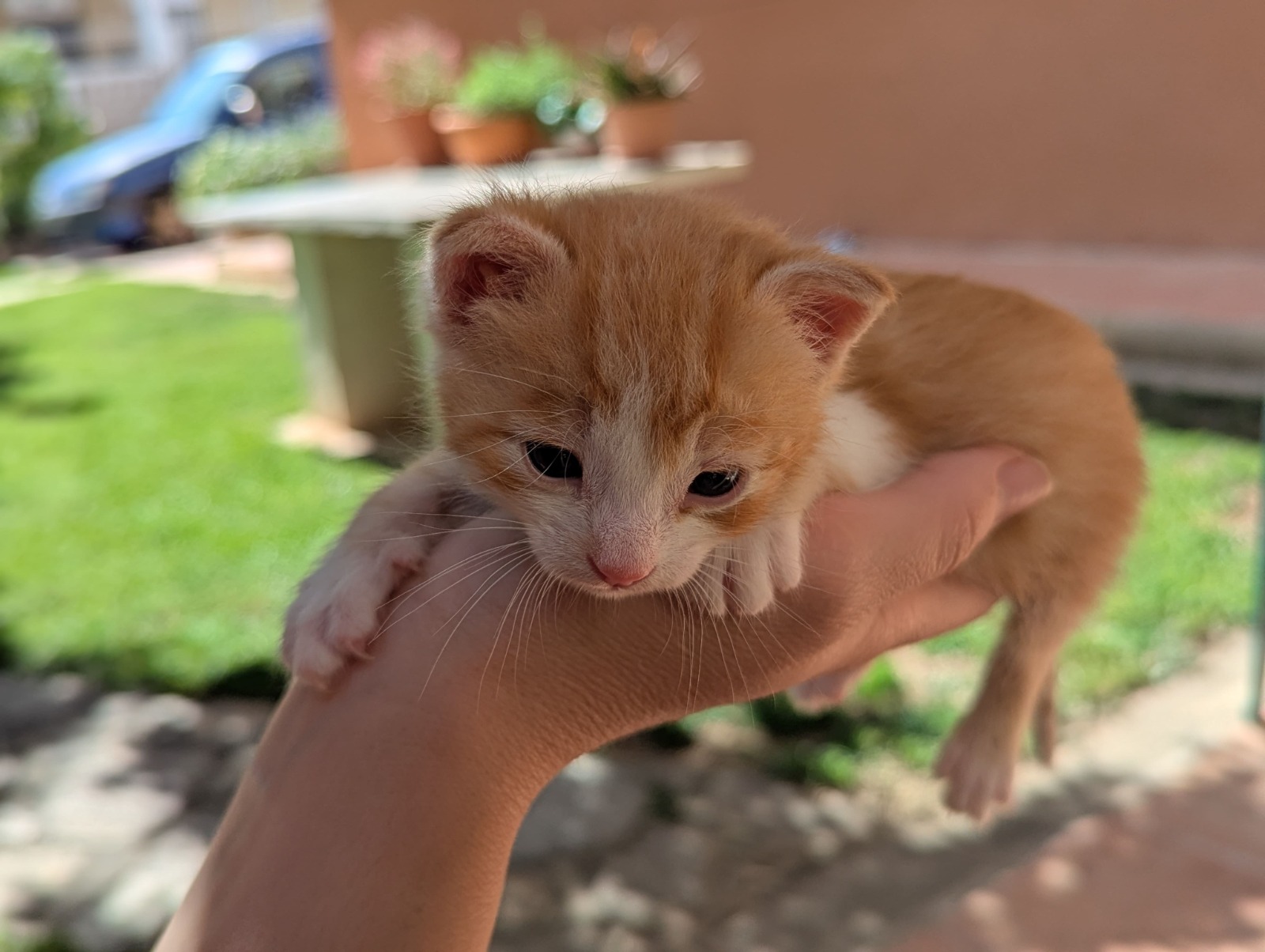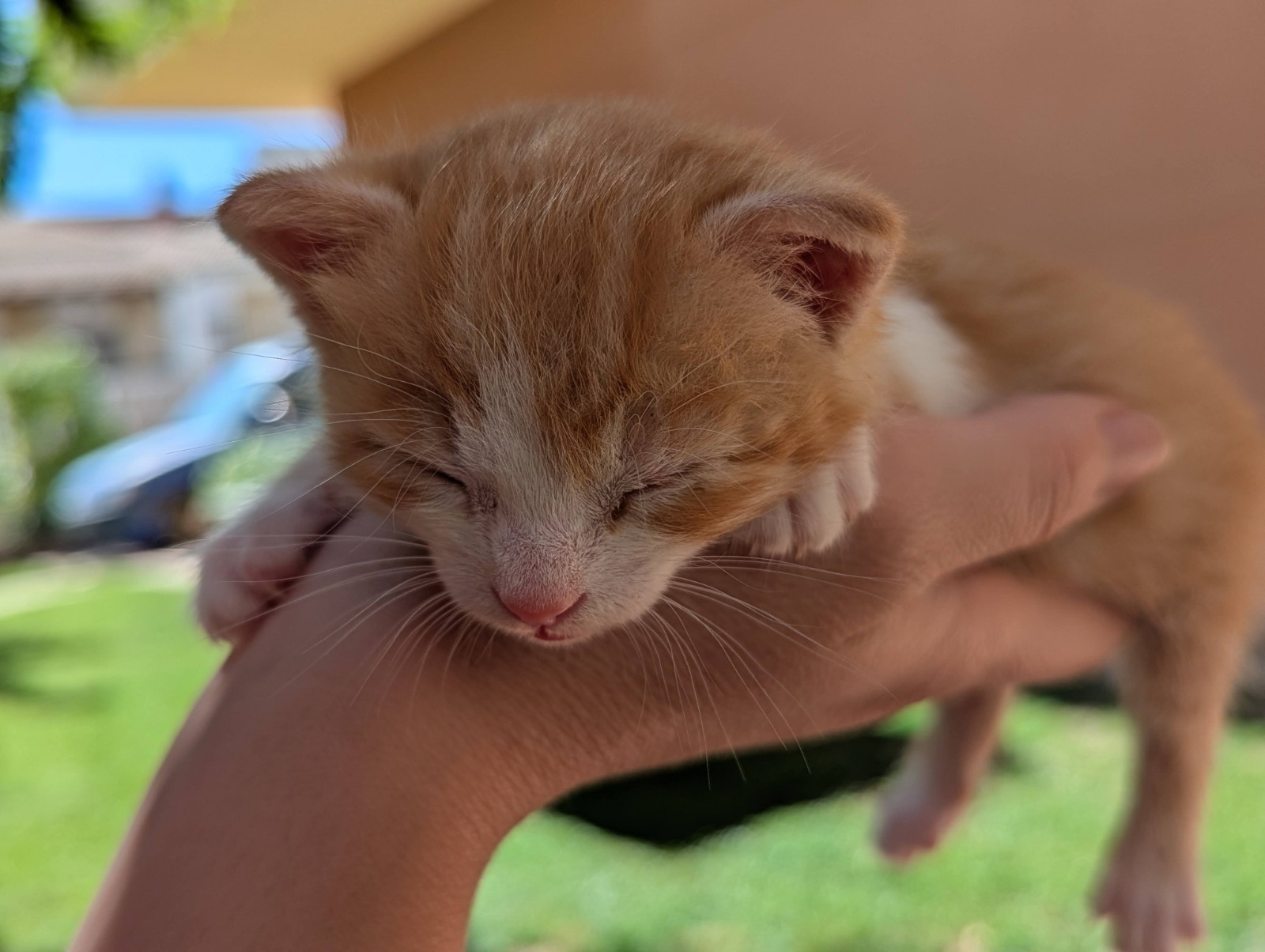 Pelé es un precioso gatito de apenas 1 mes, de color blanco y naranja tabby. Es muy dulce, tranquilo y cariñoso para lo pequeñito que es. Le encanta estar acompañado, dormir acurrucado y recibir mimos. A pesar de su corto tiempo de vida, ya ha demostrado ser un luchador y un gatito muy noble.