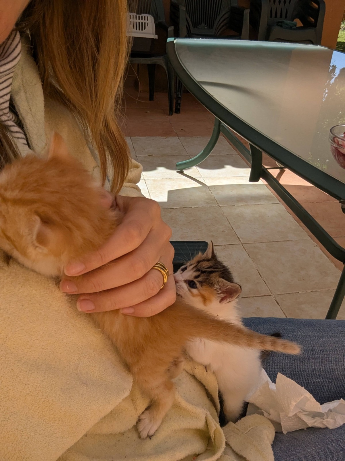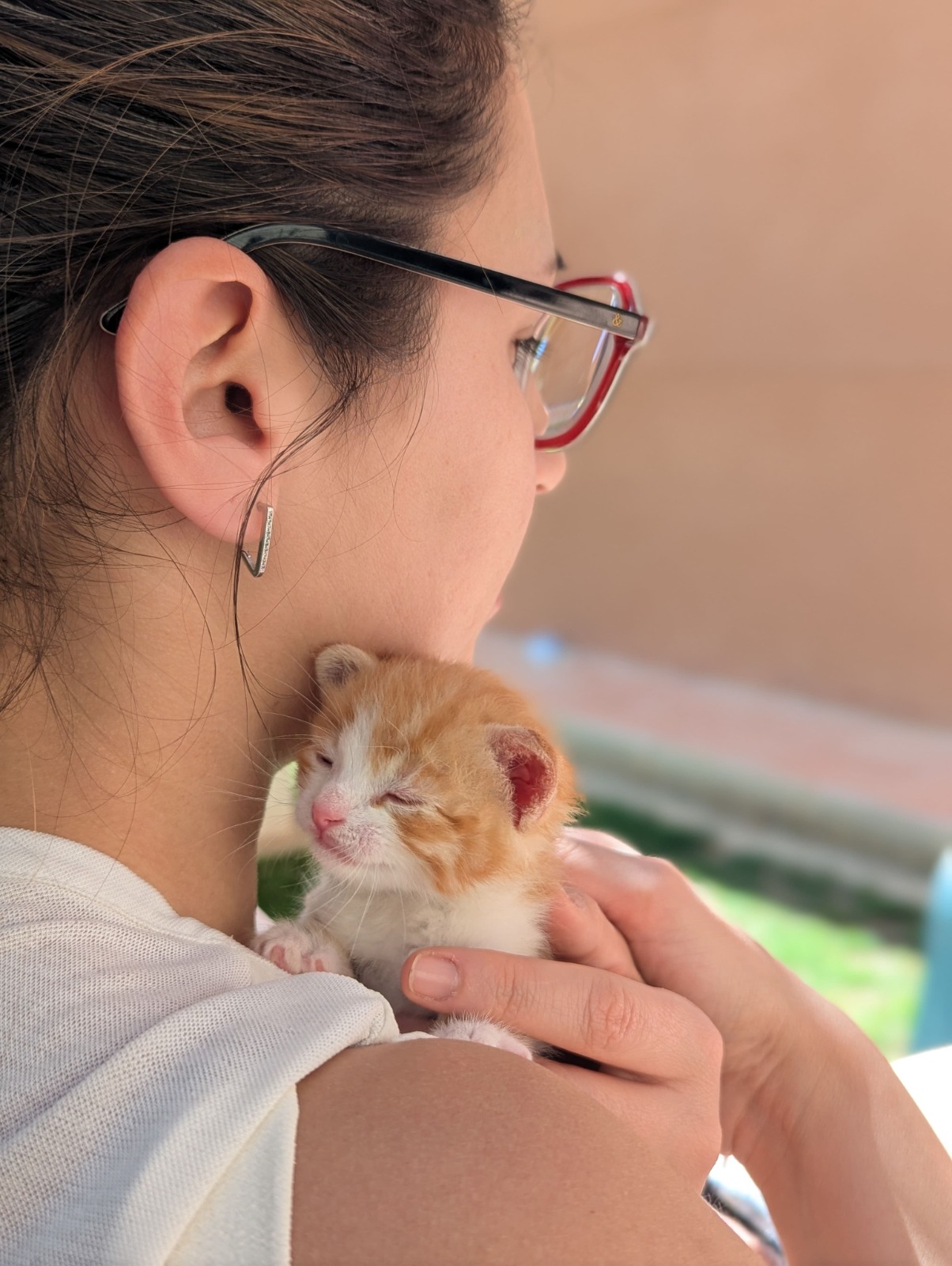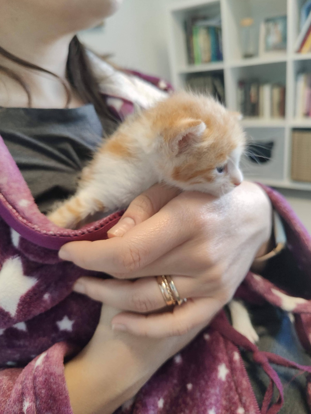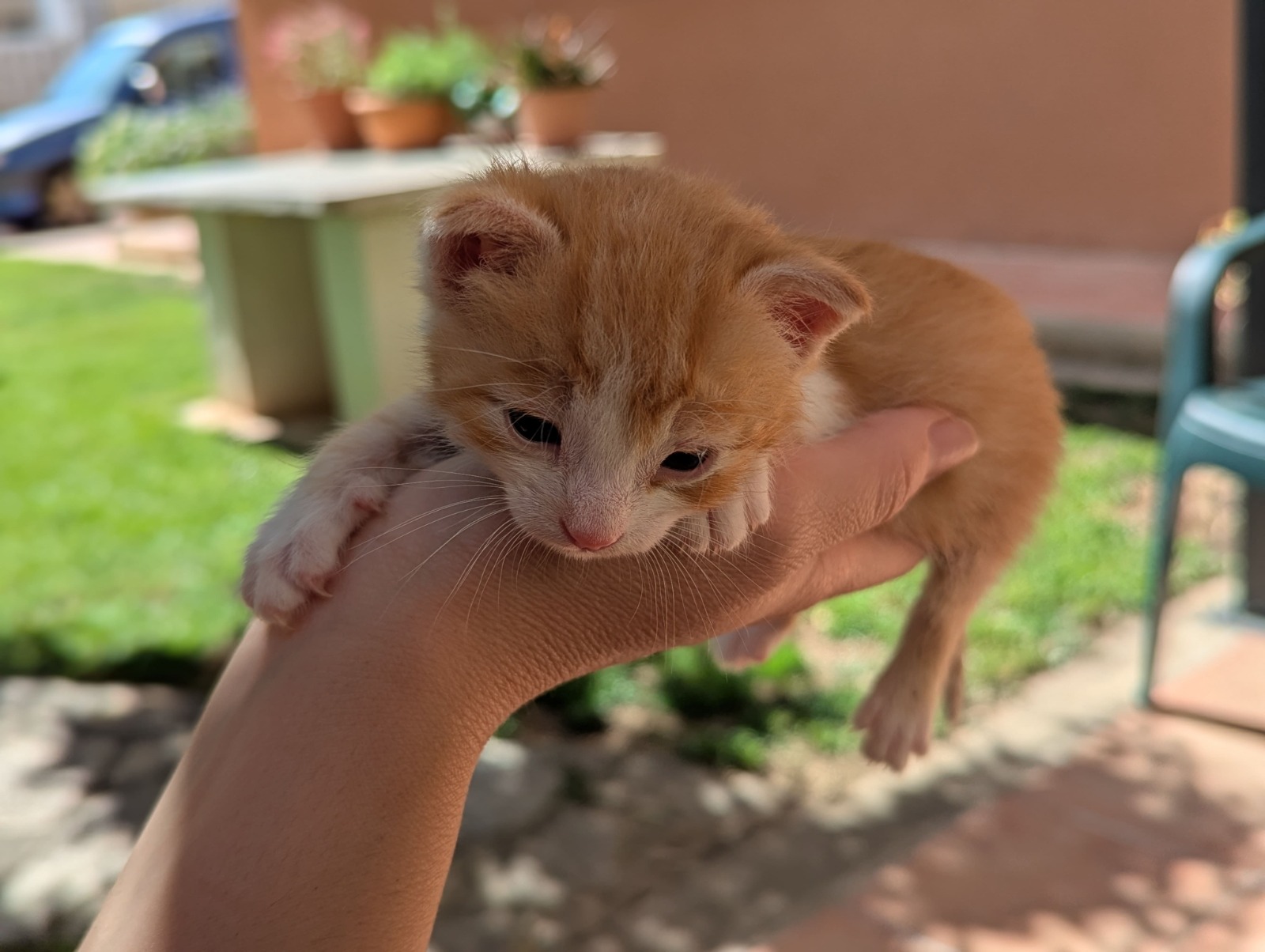 Pelé es un precioso gatito de apenas 1 mes, de color blanco y naranja tabby. Es muy dulce, tranquilo y cariñoso para lo pequeñito que es. Le encanta estar acompañado, dormir acurrucado y recibir mimos. A pesar de su corto tiempo de vida, ya ha demostrado ser un luchador y un gatito muy noble.