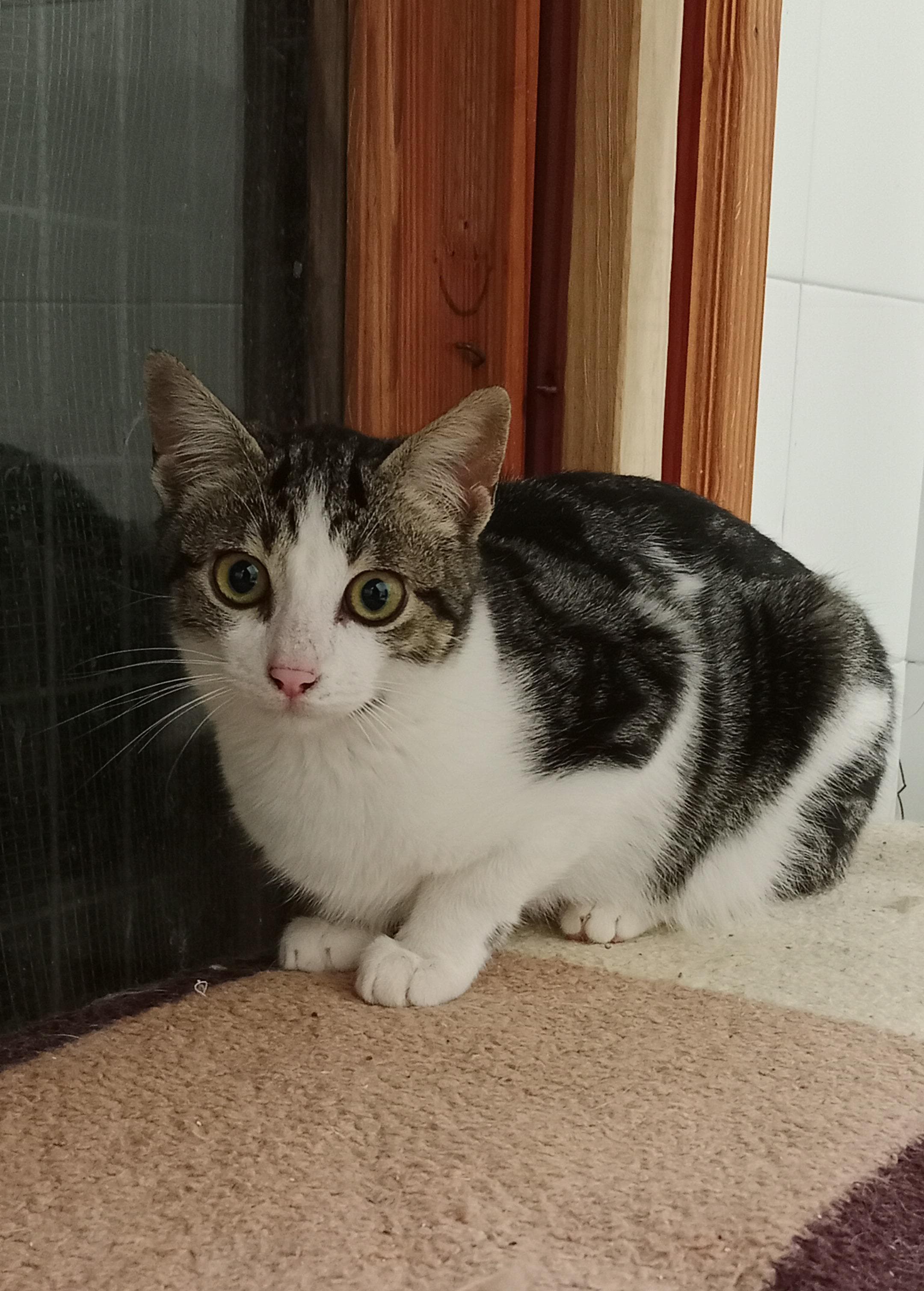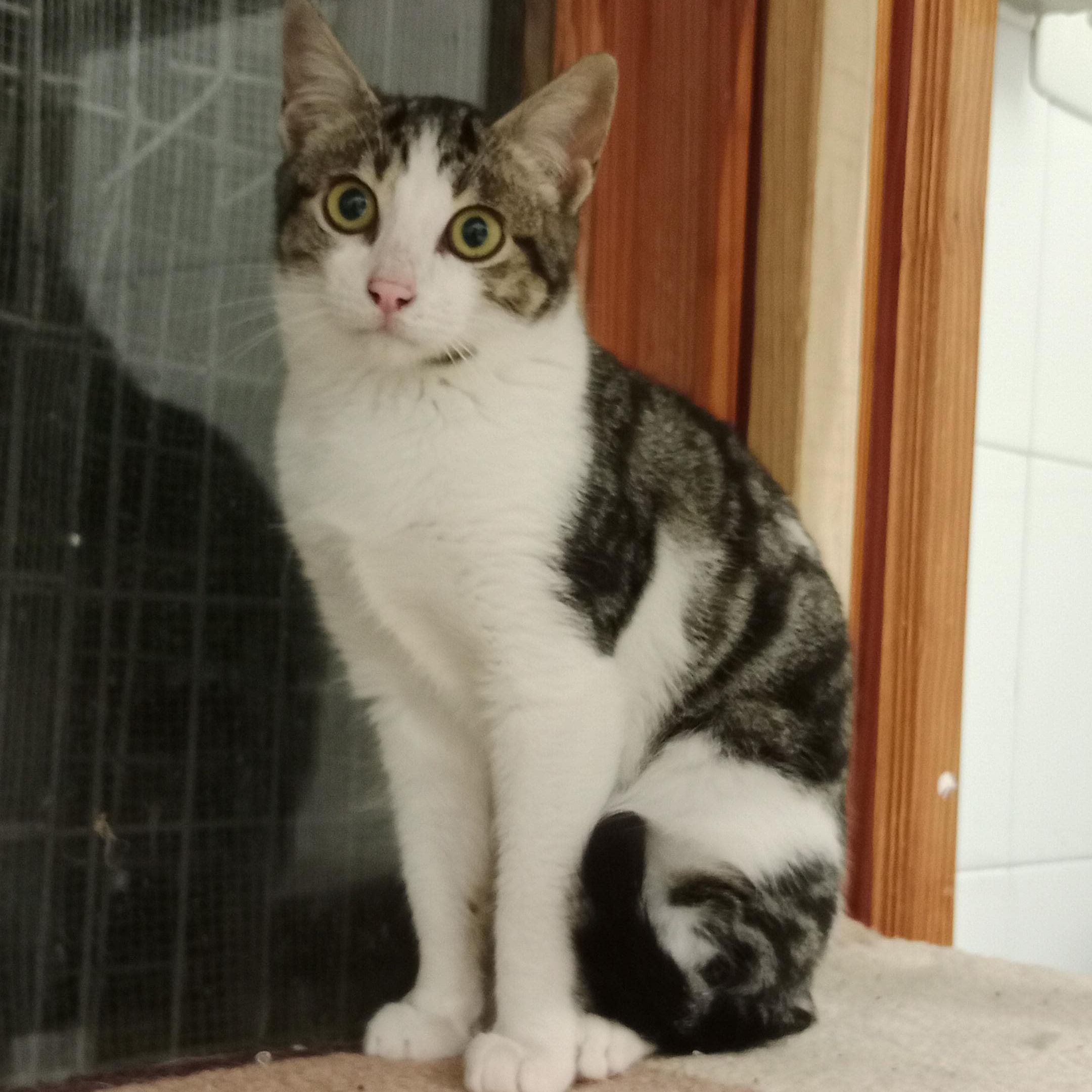 Este peludete se rescato de una fabrica del poligono industrial junto a su hermana Pincel, ya empieza a interactuar con nosotros, es un machito de mirada cautivadora, esta desparasitado, revisado y testado negativo de leucemia e inmunodeficiencia, quieres darle tu el hogar que necesita?