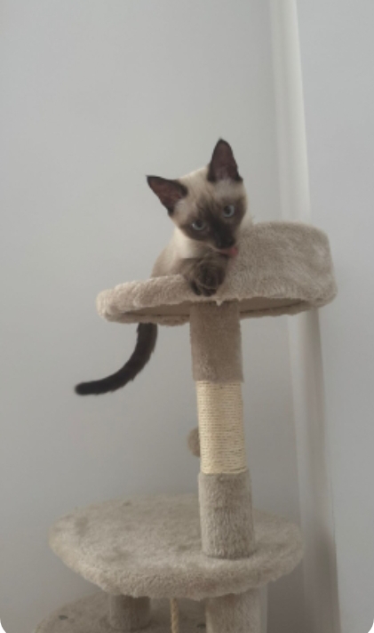 Soy muy tranquilo Mi zona preferida es el baño pero es un gato familiar. Se deja tocar, coger y hacer de todo Le gusta jugar y recibir amor y soy muy noble.