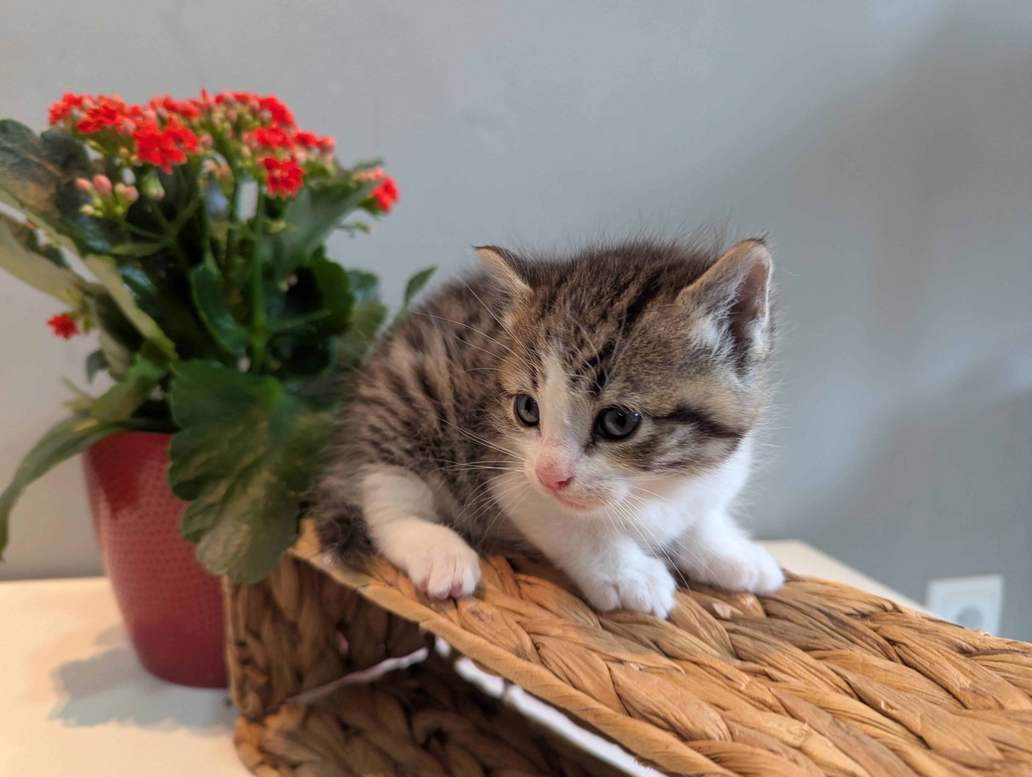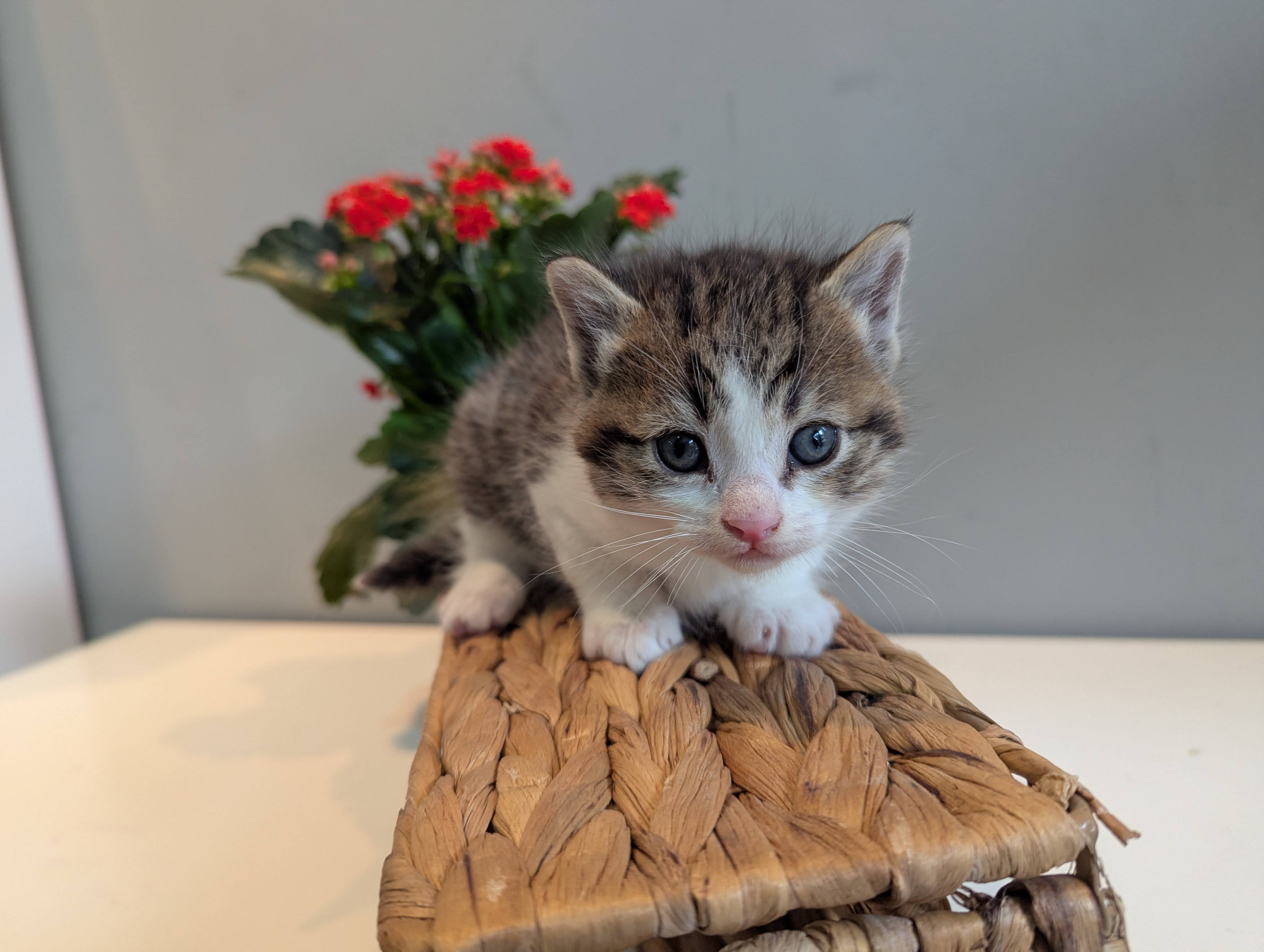 Simba es un peque valiente, pardo y blanco, muy suave y sanote. Es de los más grandecitos de la camada y le encanta explorar. 📞 CES Navarrés: 694 25 50 99