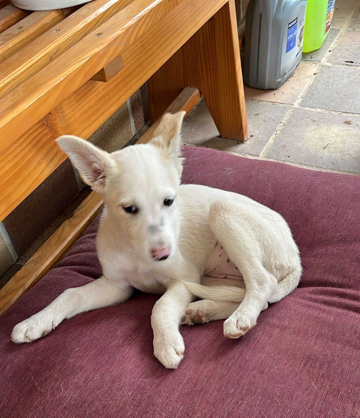 Nori es una bebé adorable de 2,5 meses que busca hogar. Fue rescatada junto a sus hermanos de una zona rural y necesita una familia que entienda lo que es adoptar un cachorro: sus necesidades, que crecerá, que romperá cosas, enfermará, deberá pasear aunque llueva o haga frío,... y, sobre todo, que es un compromiso para toda su vida. Ella, a cambio, será su fiel compañera y la mejor amiga posible, siempre dispuesto a arreglar un mal día de sus humanos. Convive con perros y gatos en su casa de acogida. De adulta pensamos que será tamaño mediano - grande. Adopciones solo en la Comunidad Valenciana.
