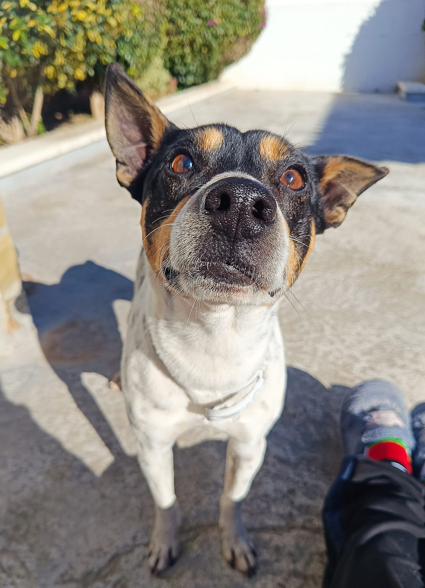 Zheus es un pequeñajo de 2 años y unos 10 kg de peso. Es un amor y busca una familia tan bonita como él. Es supersimpático y en su casa de acogida convive con sus hermanos perrunos con los que le encanta compartir juegos y paseos. Con gatos no sabemos como se comporta, no convive con ellos desde que lo hemos rescatado.