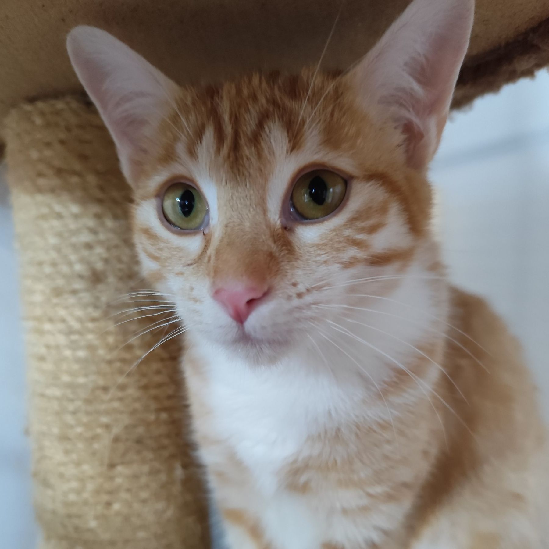 Es una gata rescatada de una colonia desde bebé tiene ahora 5 meses está esterilizada, se fue en adopción junto a su hermano Niko y los han devuelto por Alergias