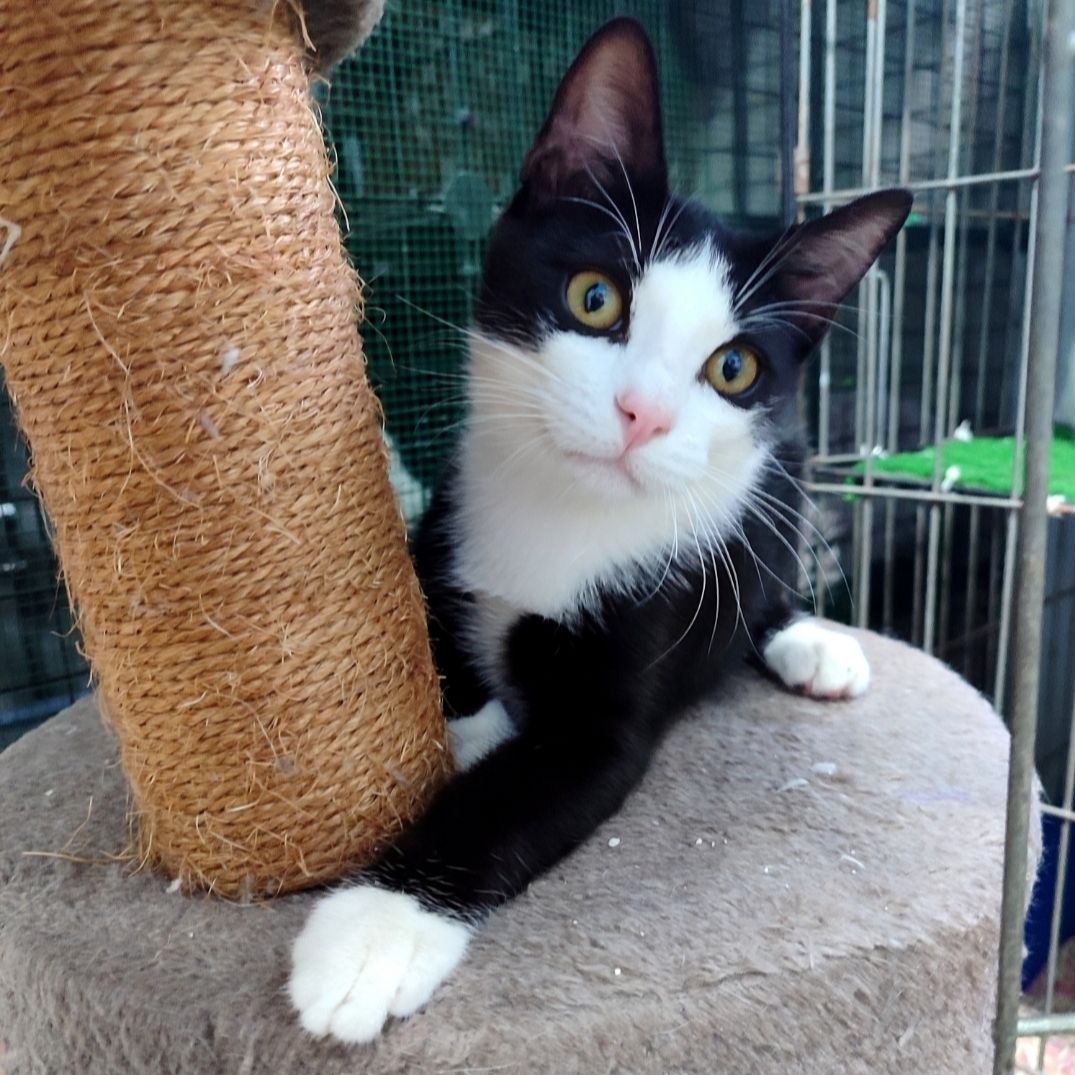 Soy un gato muy sociable y curioso, adicto a las caricias. Puedes venir a conocerme al refugio y comprobarlo, no te arrepentirás