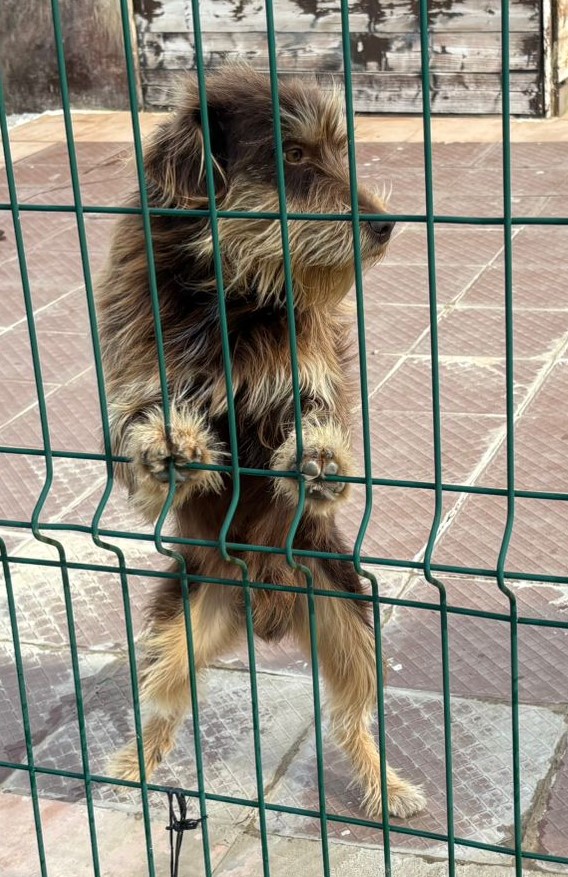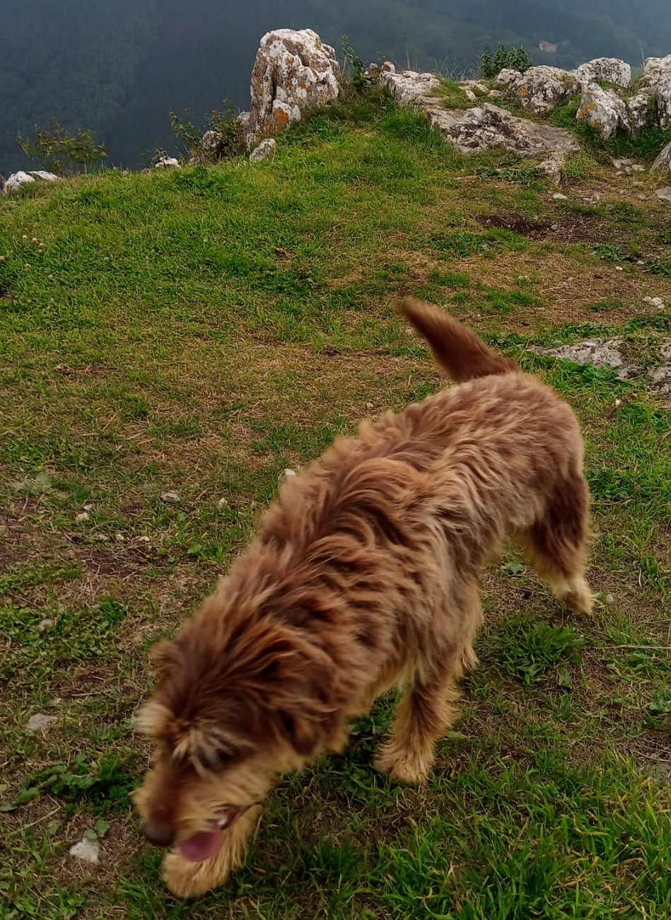 Apareció abandonado en el monte siendo cachorro y a vivido en el baserri hasta ahora. Esta acostumbrado a otros perros y a gatos, juega con los niños. y es muy listo y obediente como buen pastor vasco.