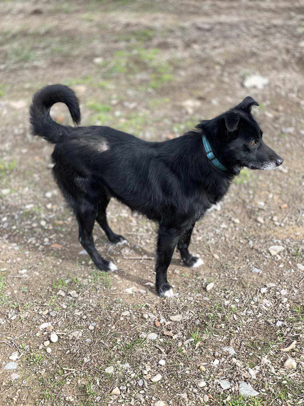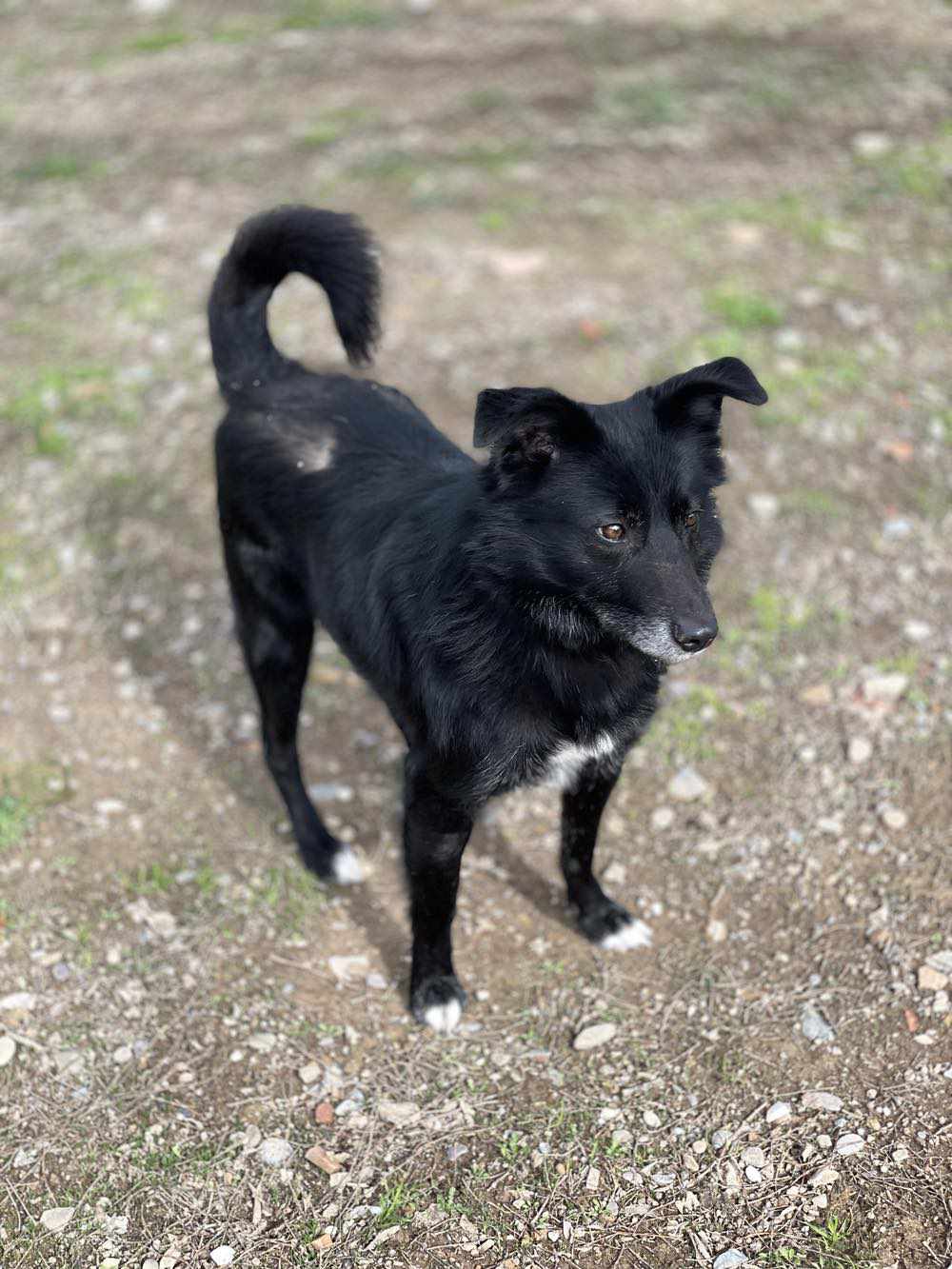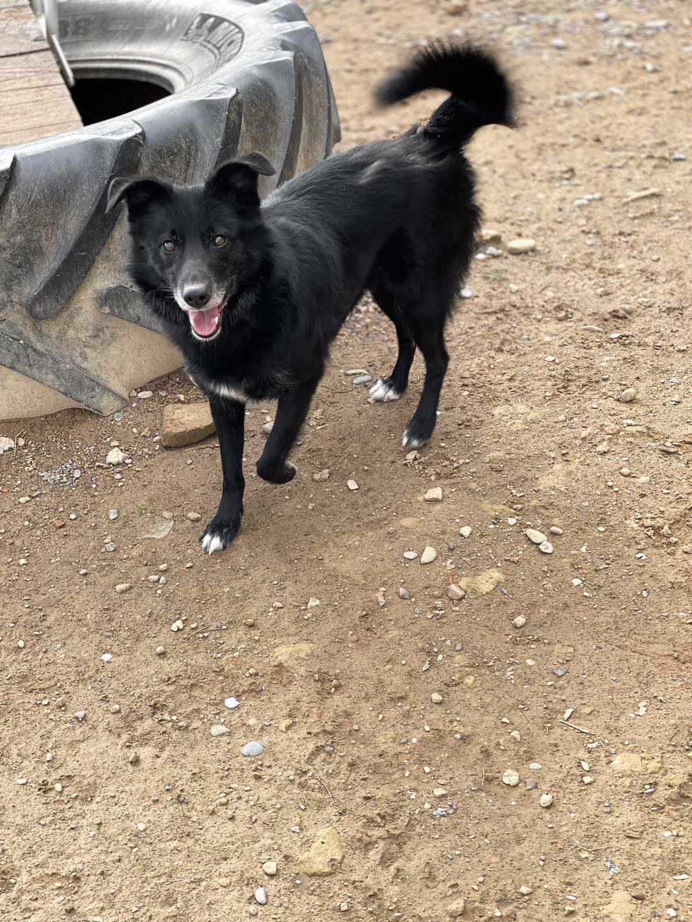 Está con nosotros desde el 16-01-2026. Se recogió sin chip, por los caminos de Santa Ana, en TARAZONA (Zaragoza). Se recogió al mismo tiempo que otros 3 perros, que estaban juntos abandonados. Es un perro adulto, mezcla de border collie. Lleva unas marcas sin pelo en el lomo, por la alergia que tuvo a las pulgas con las que llegó. Ya se le puso tratamiento y esas marcas y las zonas sin pelo se le van curando.