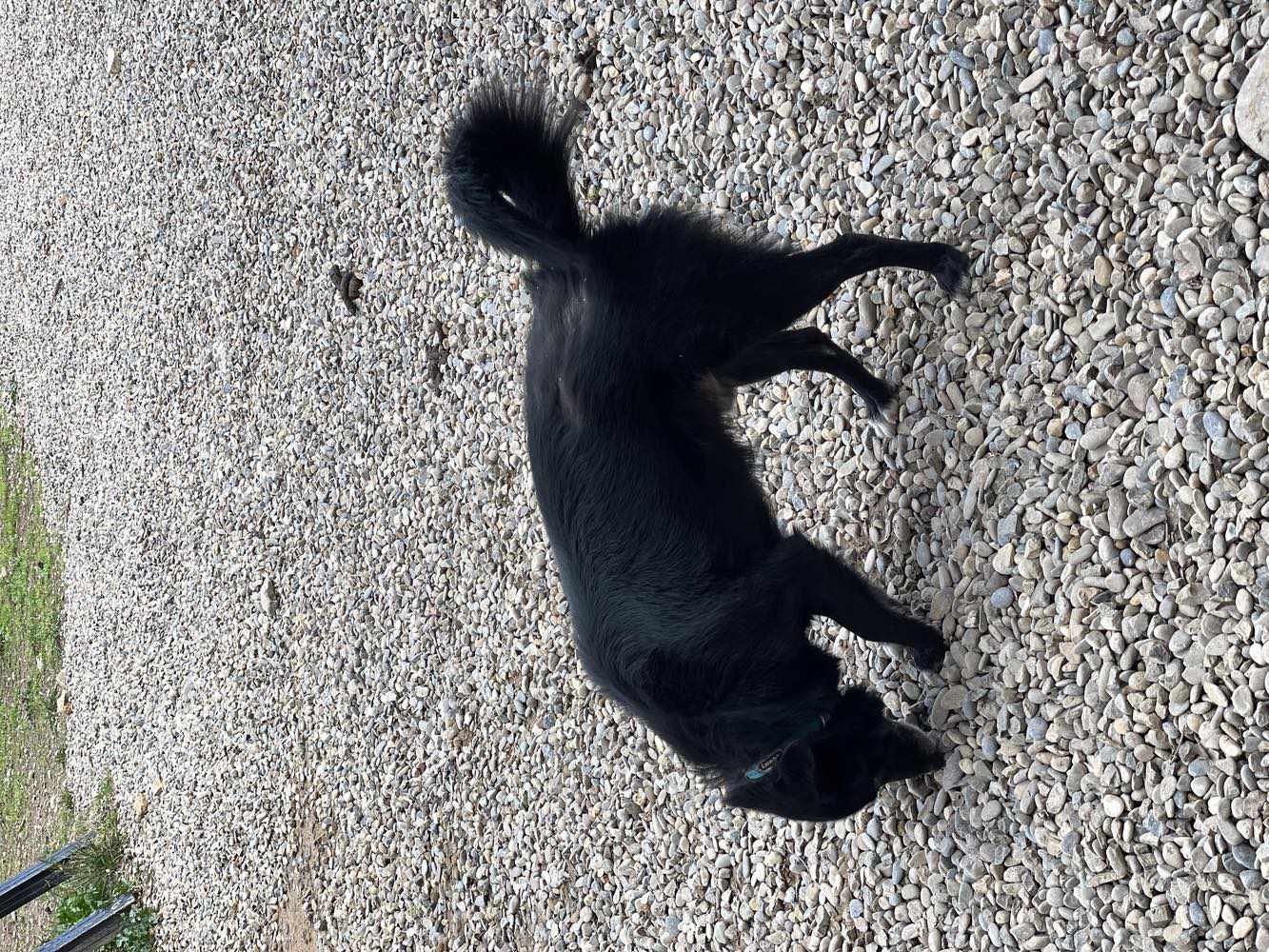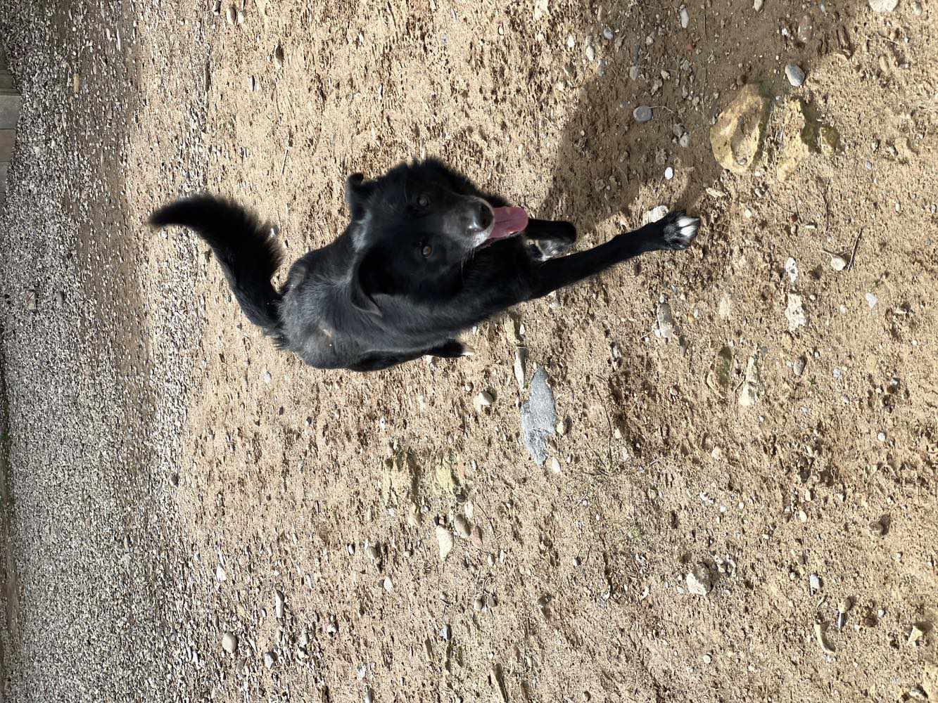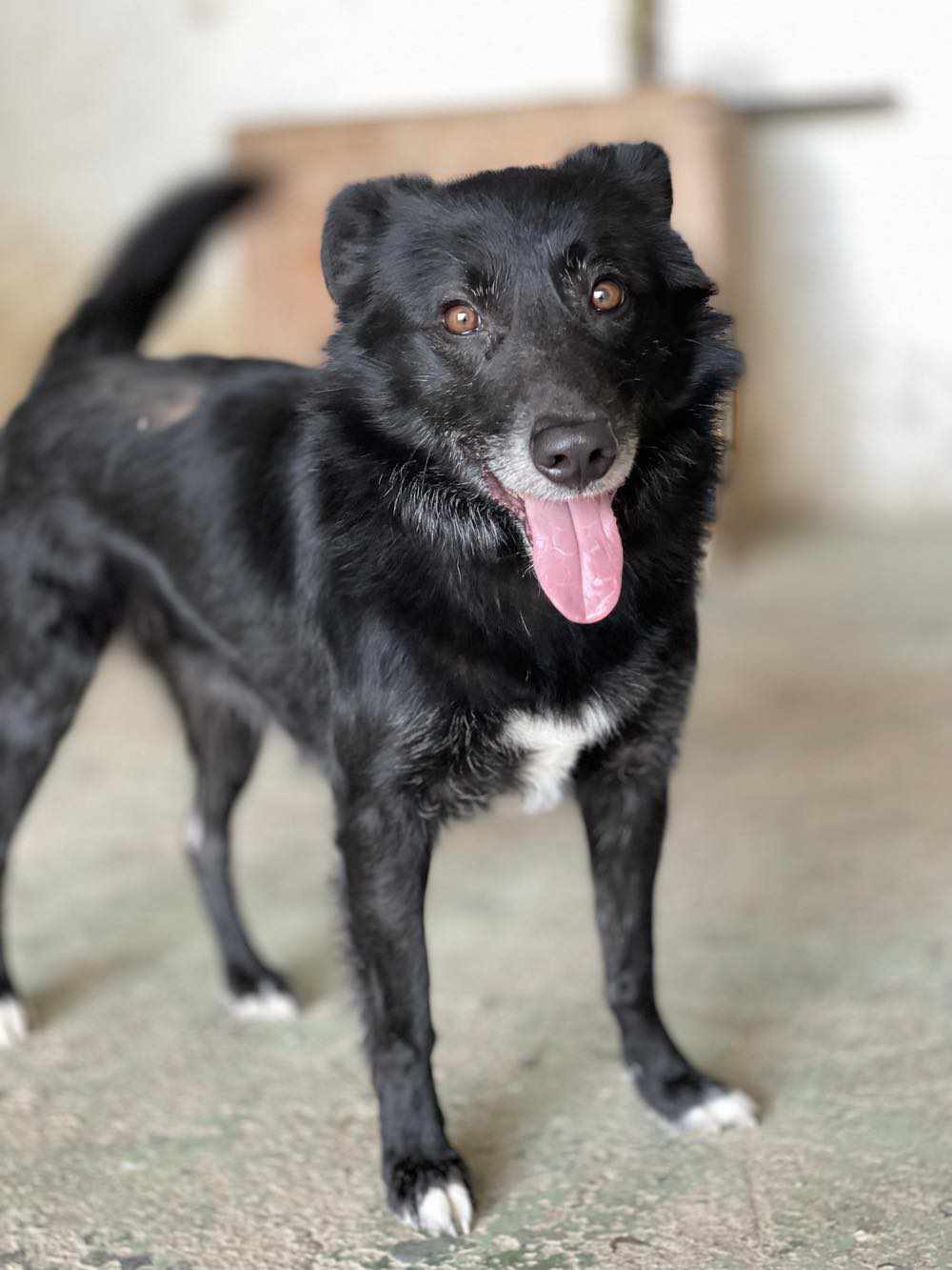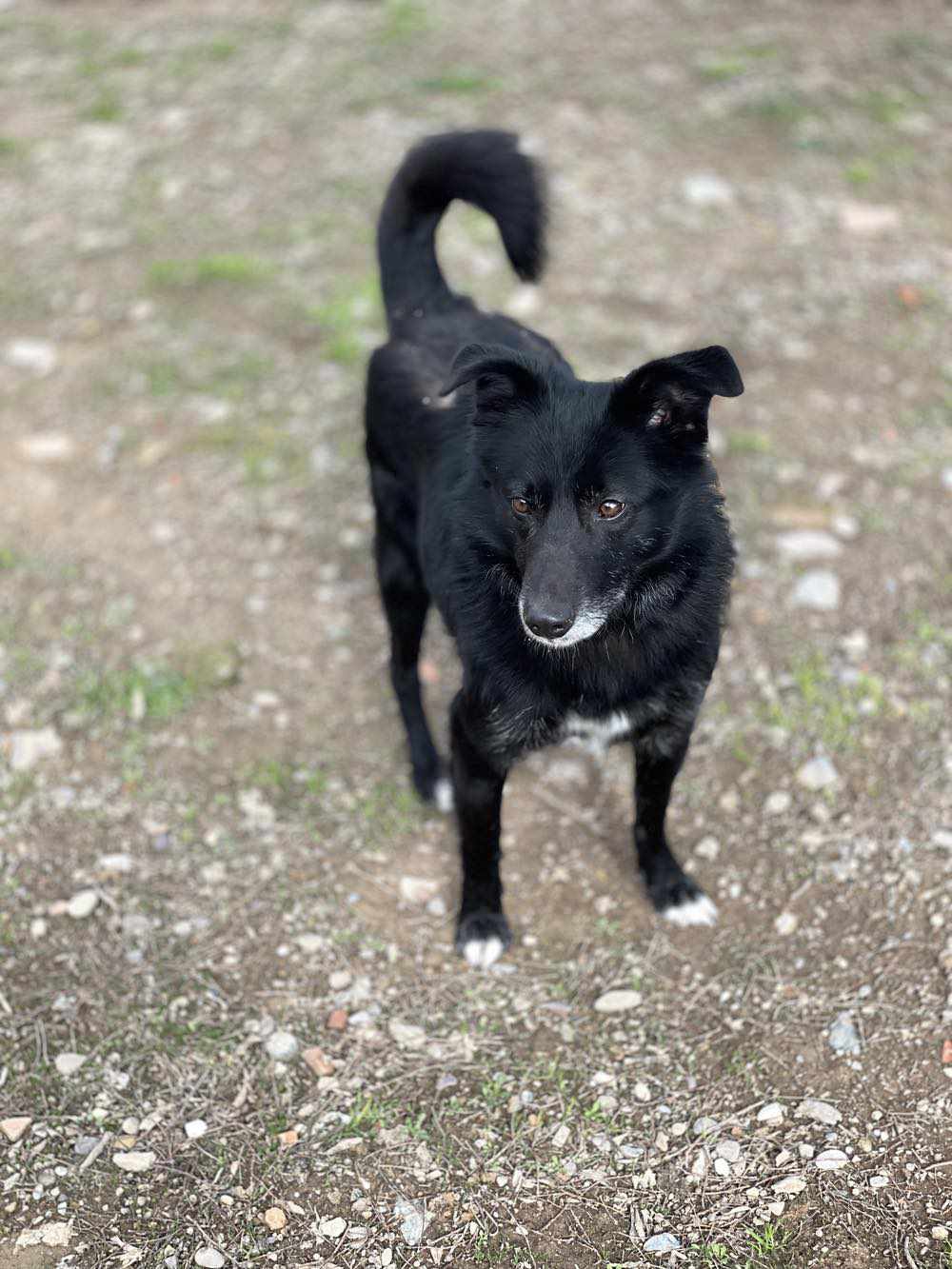 Está con nosotros desde el 16-01-2026. Se recogió sin chip, por los caminos de Santa Ana, en TARAZONA (Zaragoza). Se recogió al mismo tiempo que otros 3 perros, que estaban juntos abandonados. Es un perro adulto, mezcla de border collie. Lleva unas marcas sin pelo en el lomo, por la alergia que tuvo a las pulgas con las que llegó. Ya se le puso tratamiento y esas marcas y las zonas sin pelo se le van curando.