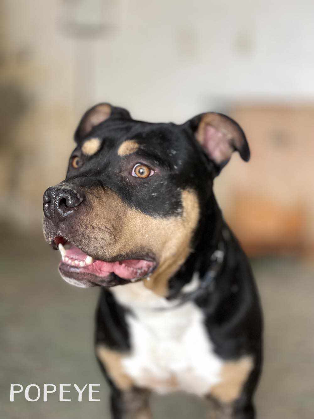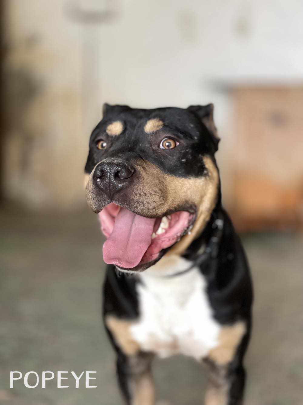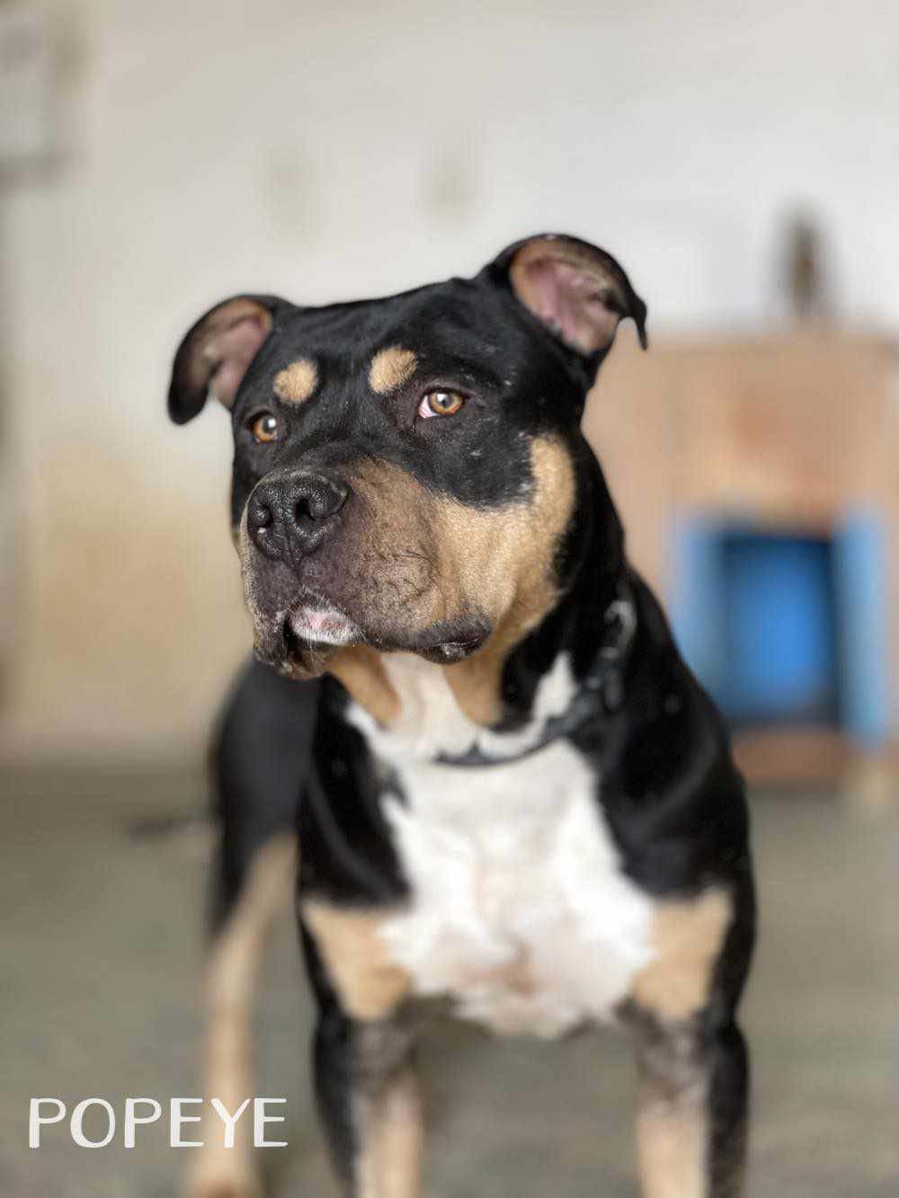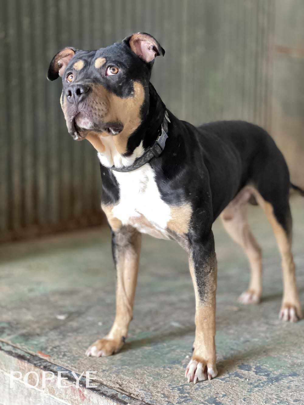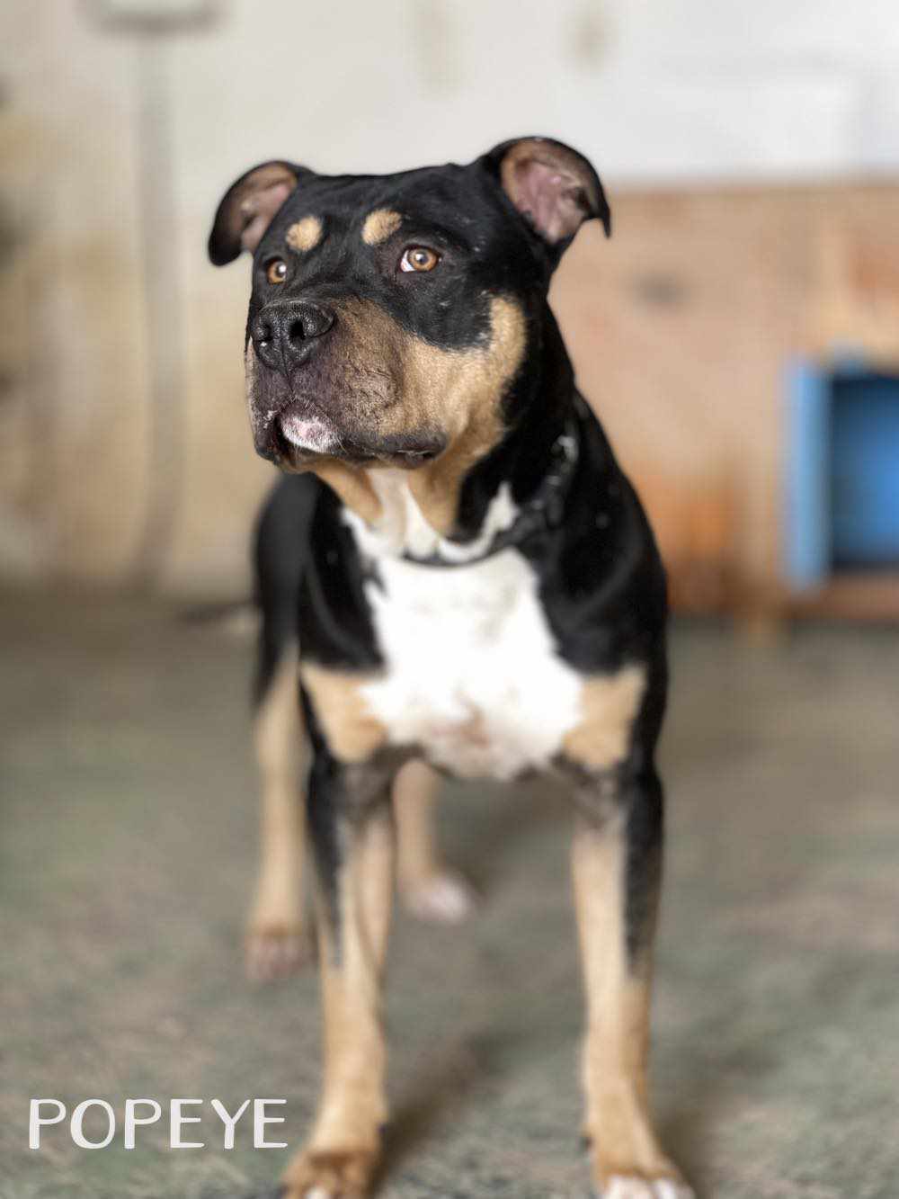POPEYE, perro mestizo está en adopción en Tarazona (Zaragoza). Este bellezón, es un perro joven todavía, activo, lleno de vitalidad y energía. Tiene un carácter muy bueno con todo el mundo, y se muestra cariñoso contigo, aunque sea la primera vez que te ve. Es un perro potente en su porte, y será buen guardián de tu casa y jardín. Es juguetón también, y le encantan los premios. . Está aprendiendo las rutinas del paseo. Contacto: 688987615